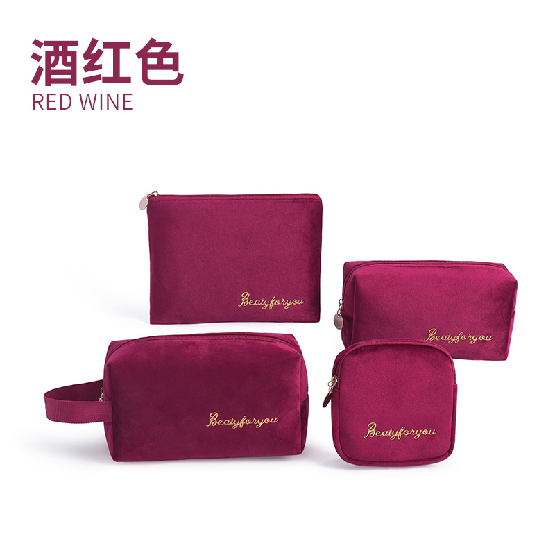 法兰绒化妆收纳包手提绒布女手拿包大容量口红袋北欧风ins四件套