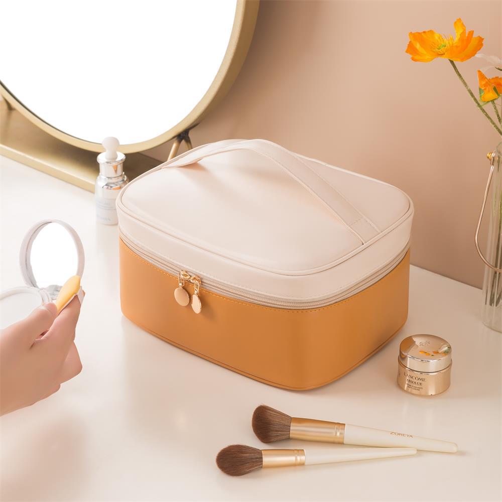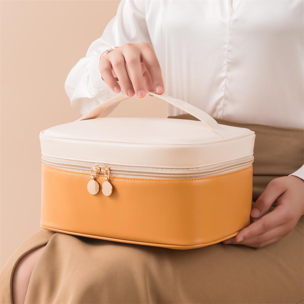 拼色分格化妆包轻奢便携手提包多功能防水洗漱包出差旅行PU收纳袋