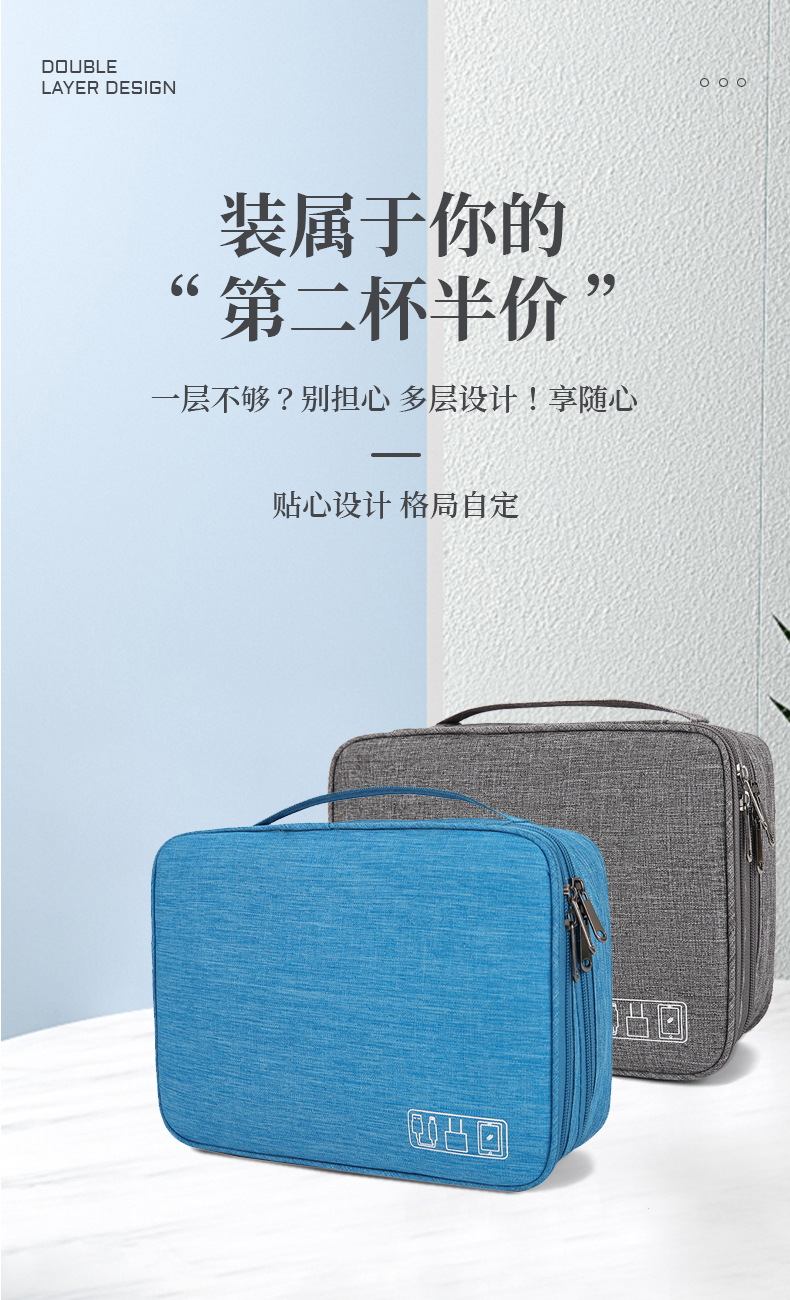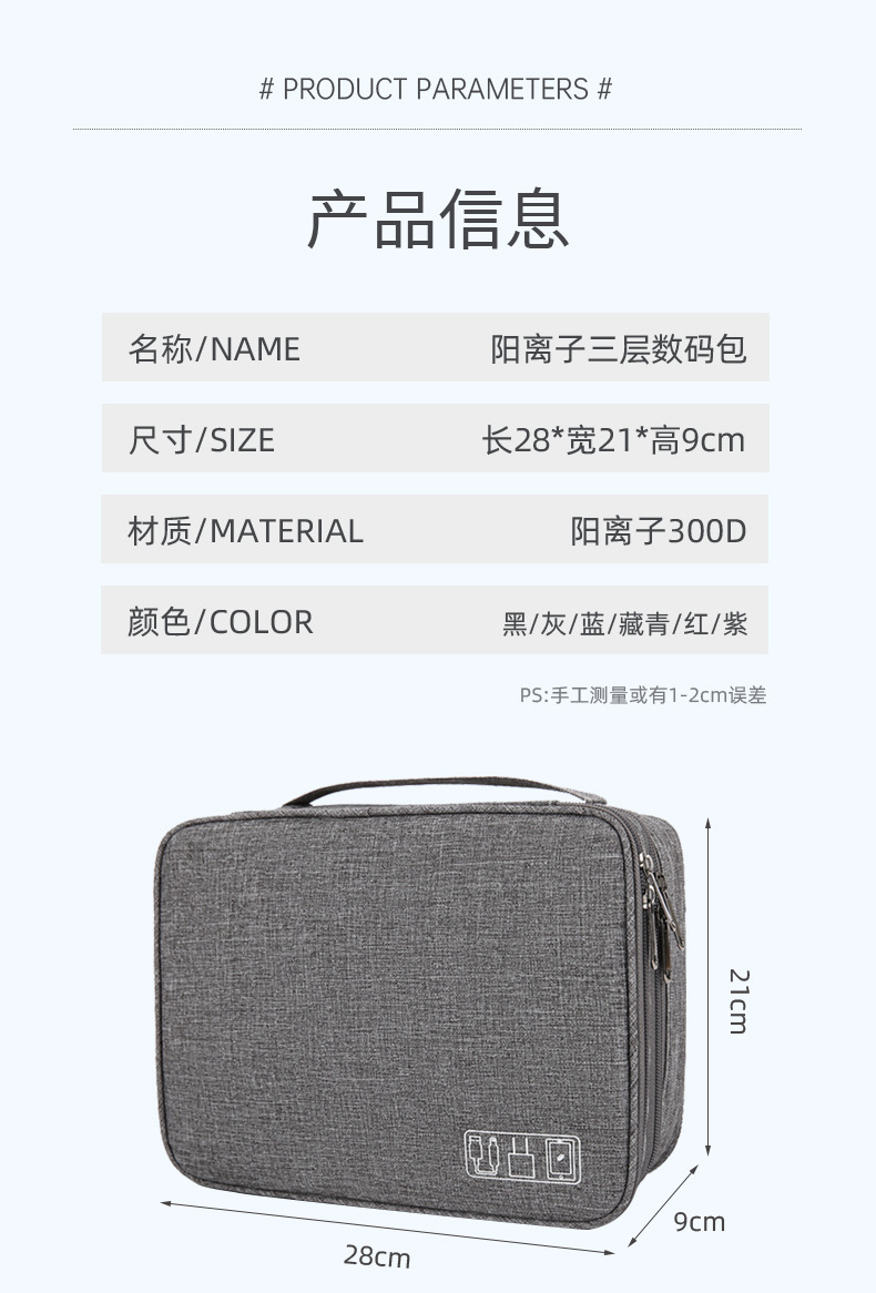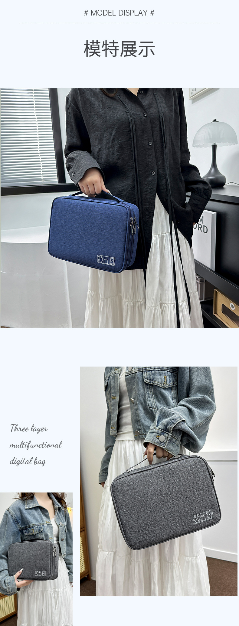 跨境数据线收纳包三层大容量数码包u盘充电宝耳机多格收纳整理包