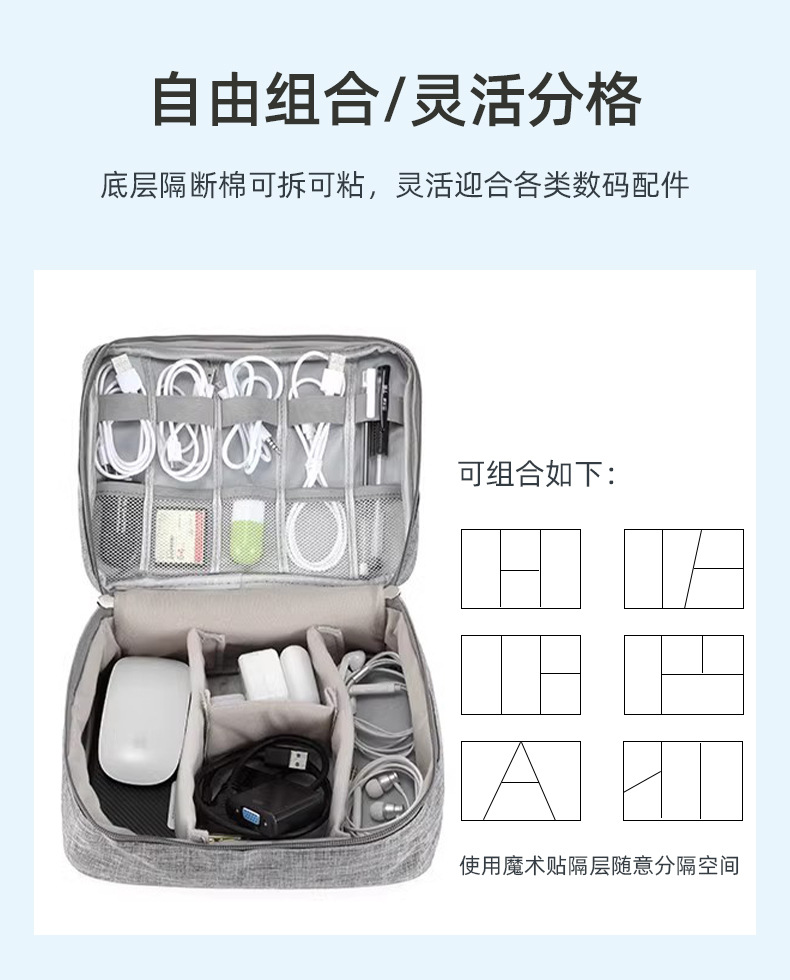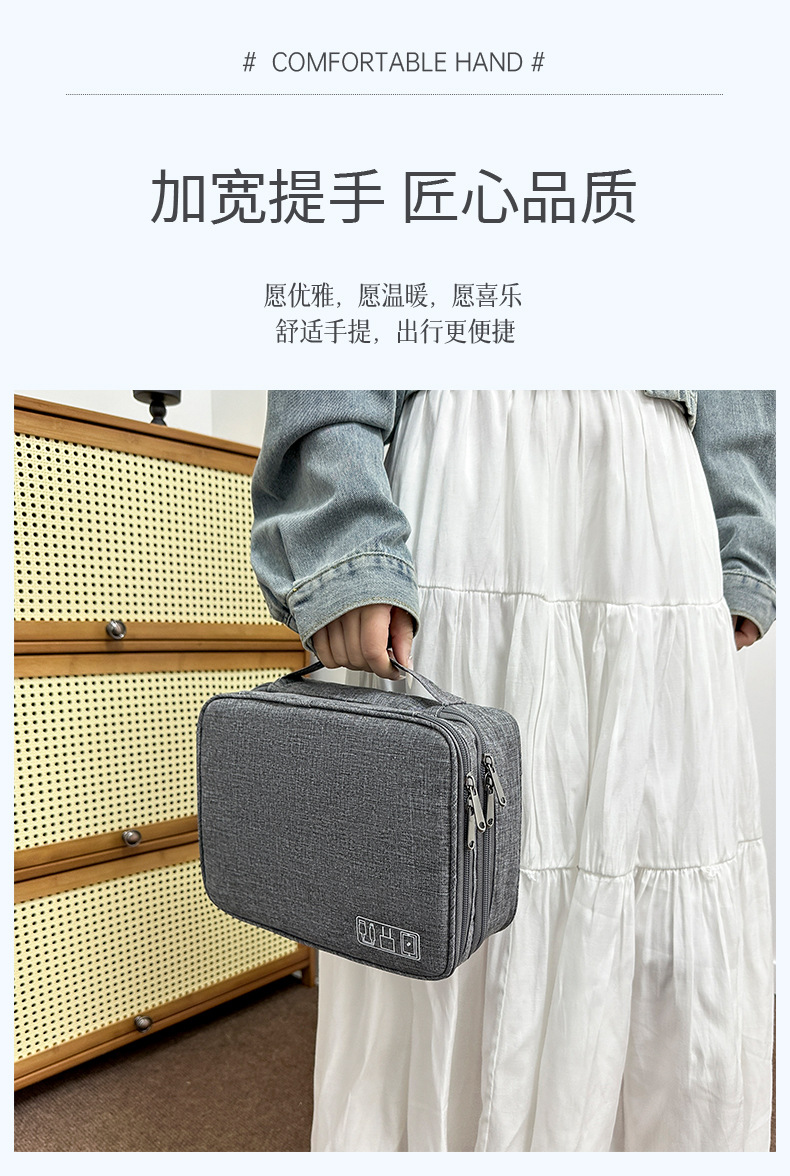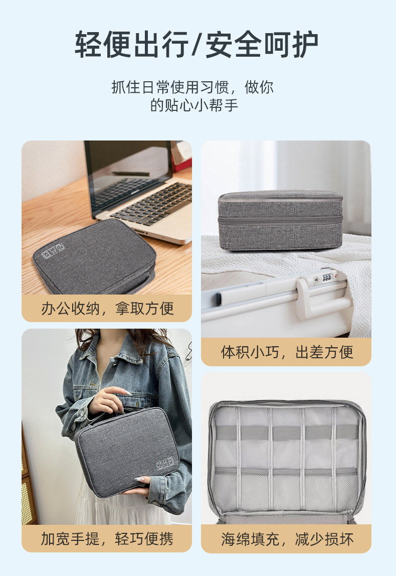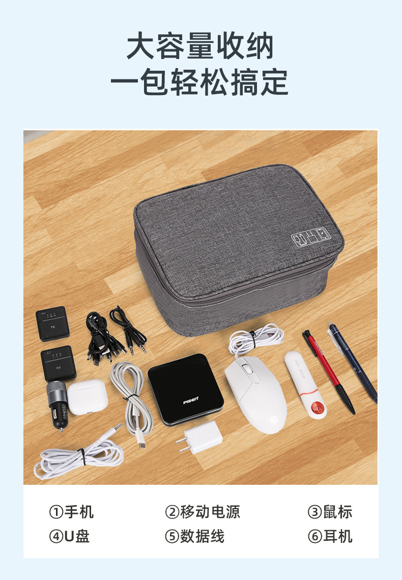 跨境数据线收纳包三层大容量数码包u盘充电宝耳机多格收纳整理包