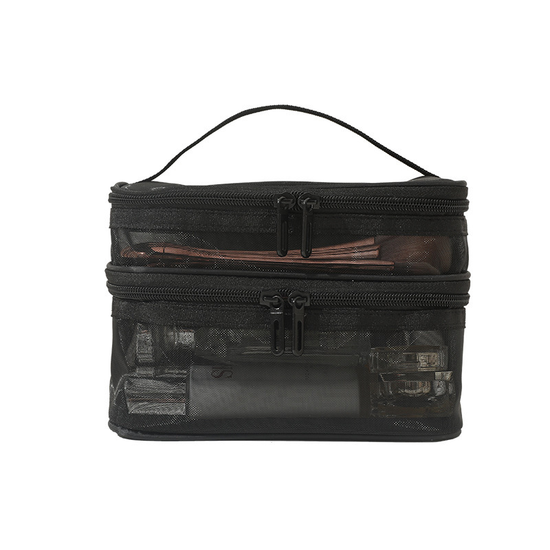 2023新款手提包化妆包便携高级感透明大容量双层网纱收纳包洗漱包