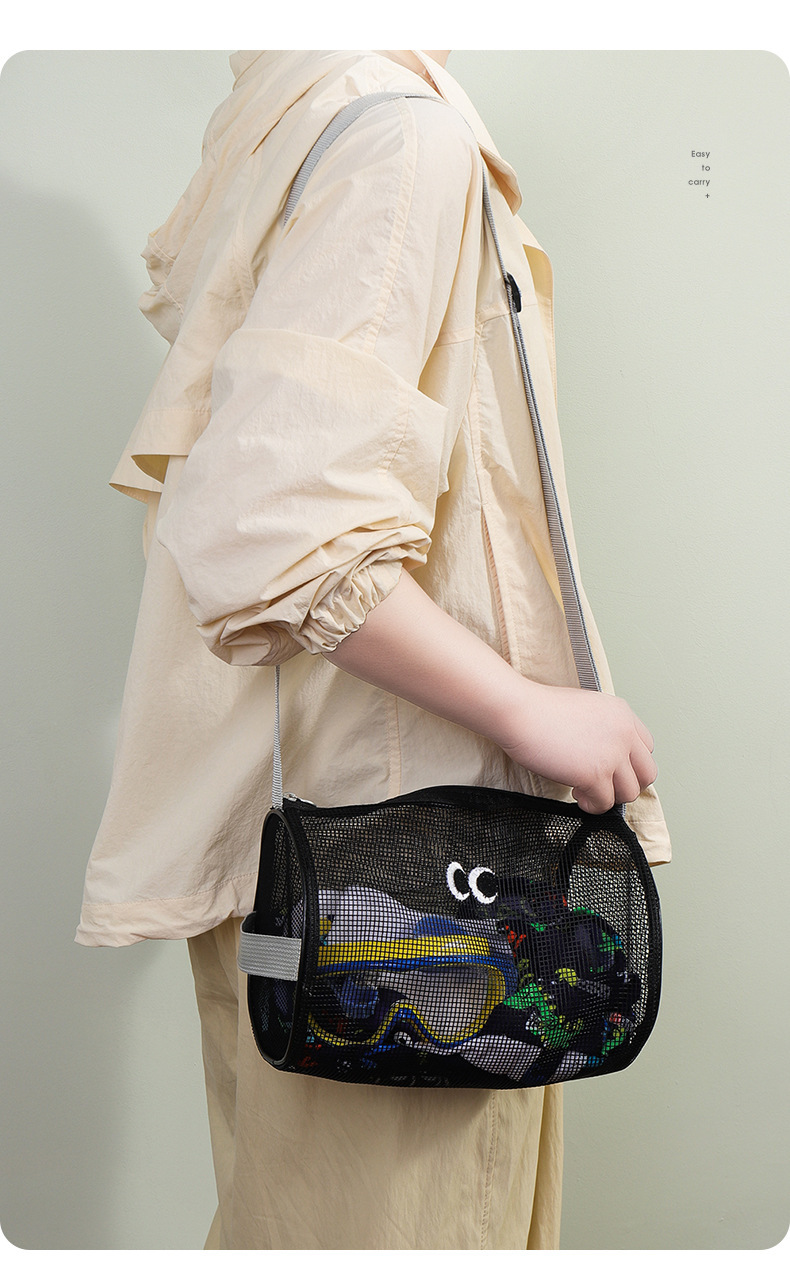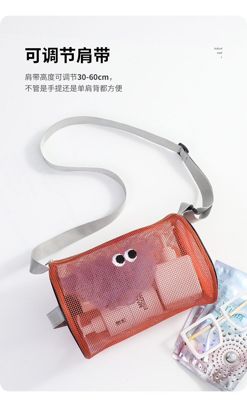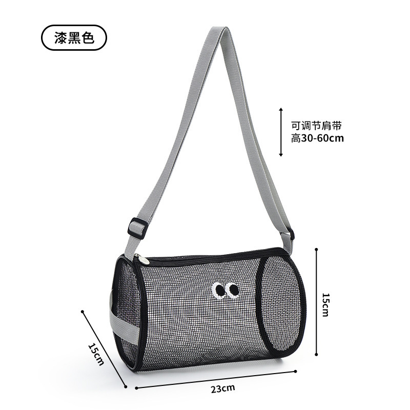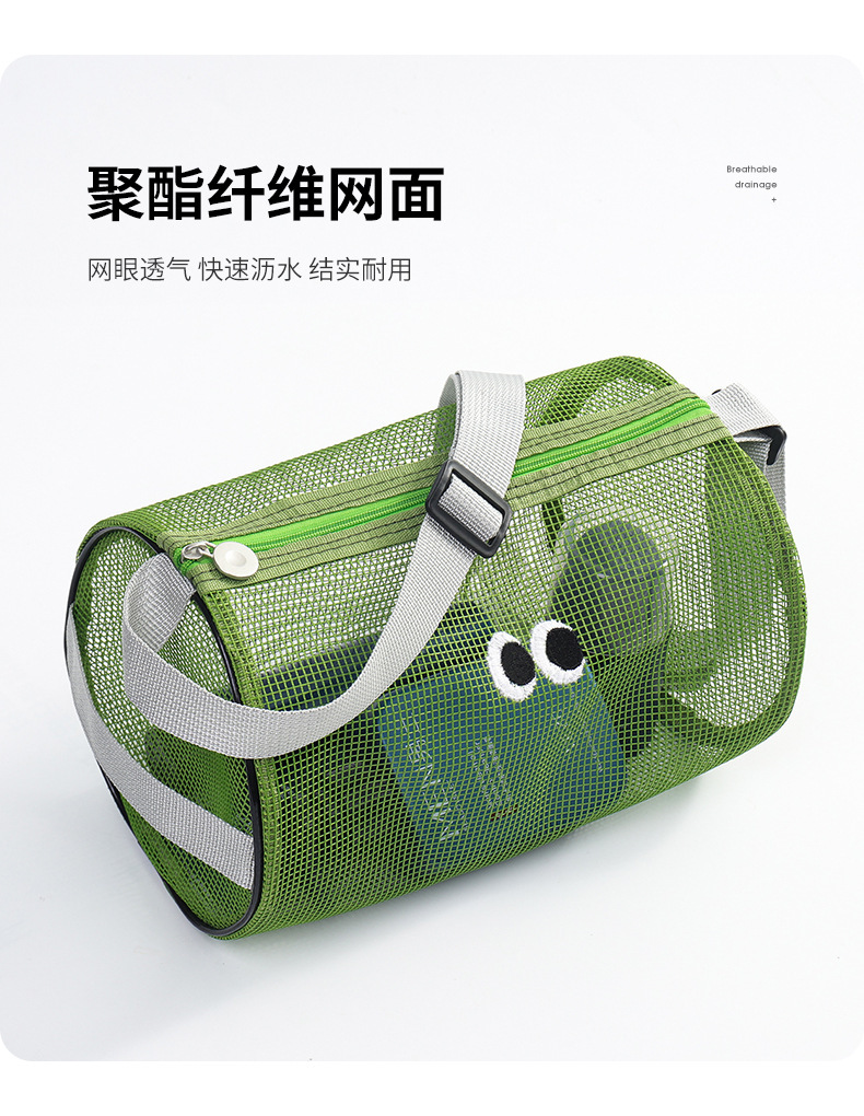 圆筒透气网眼大眼睛休闲旅行手提斜挎包沙滩游泳洗漱收纳包收纳袋