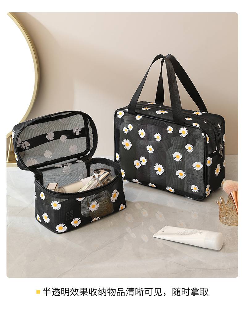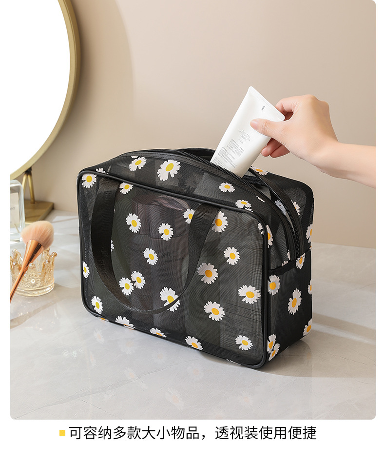 新款小雏菊网纱透明化妆包大容量简约便携洗漱包手提旅行收纳袋