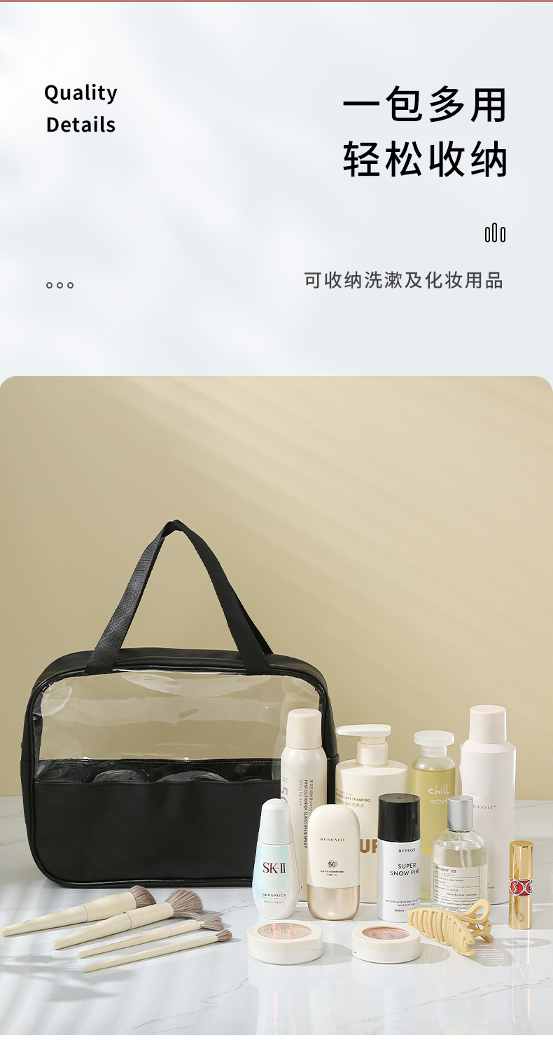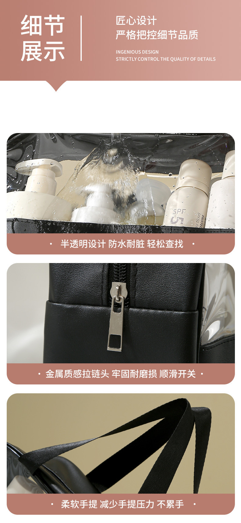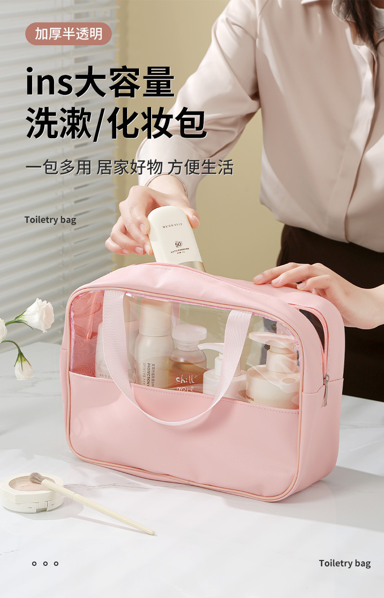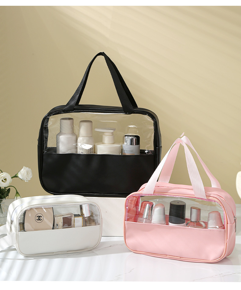 新款PVC半透明拼接化妆包 大容量洗浴包PU防水手提便携旅行收纳袋