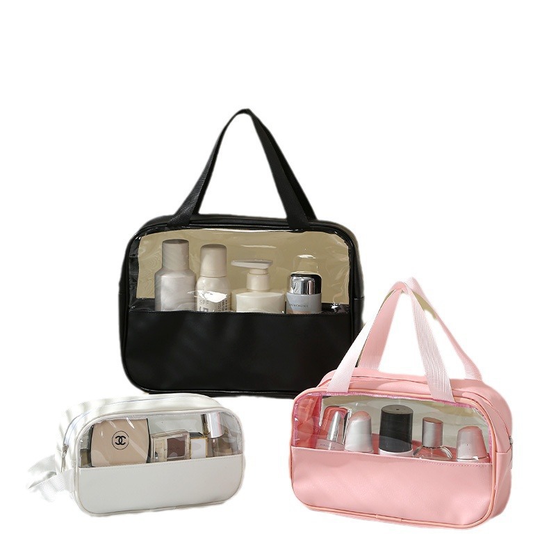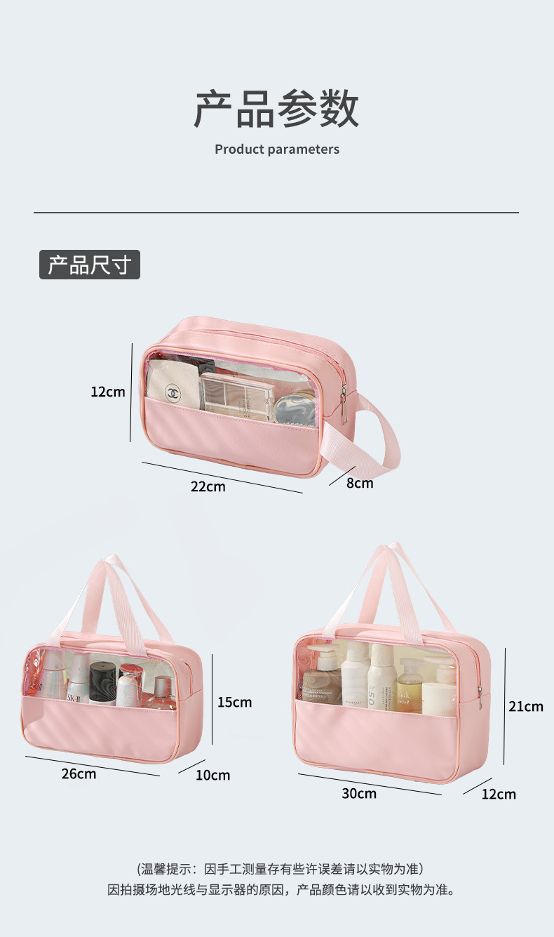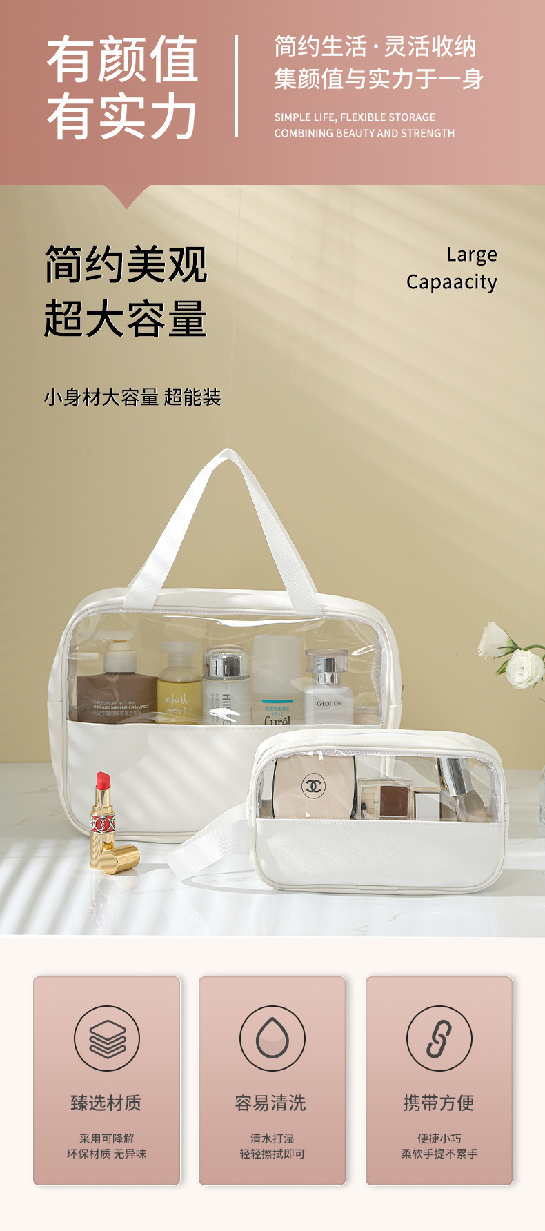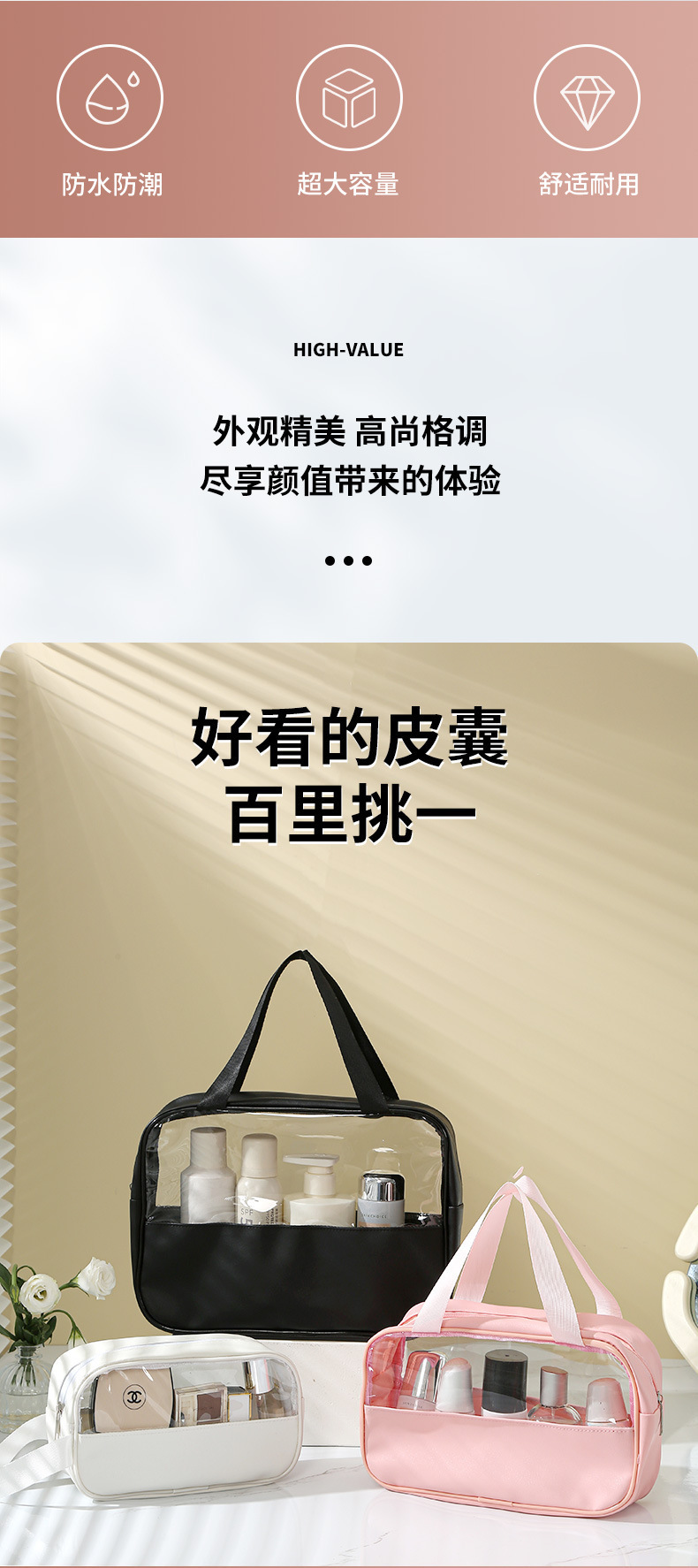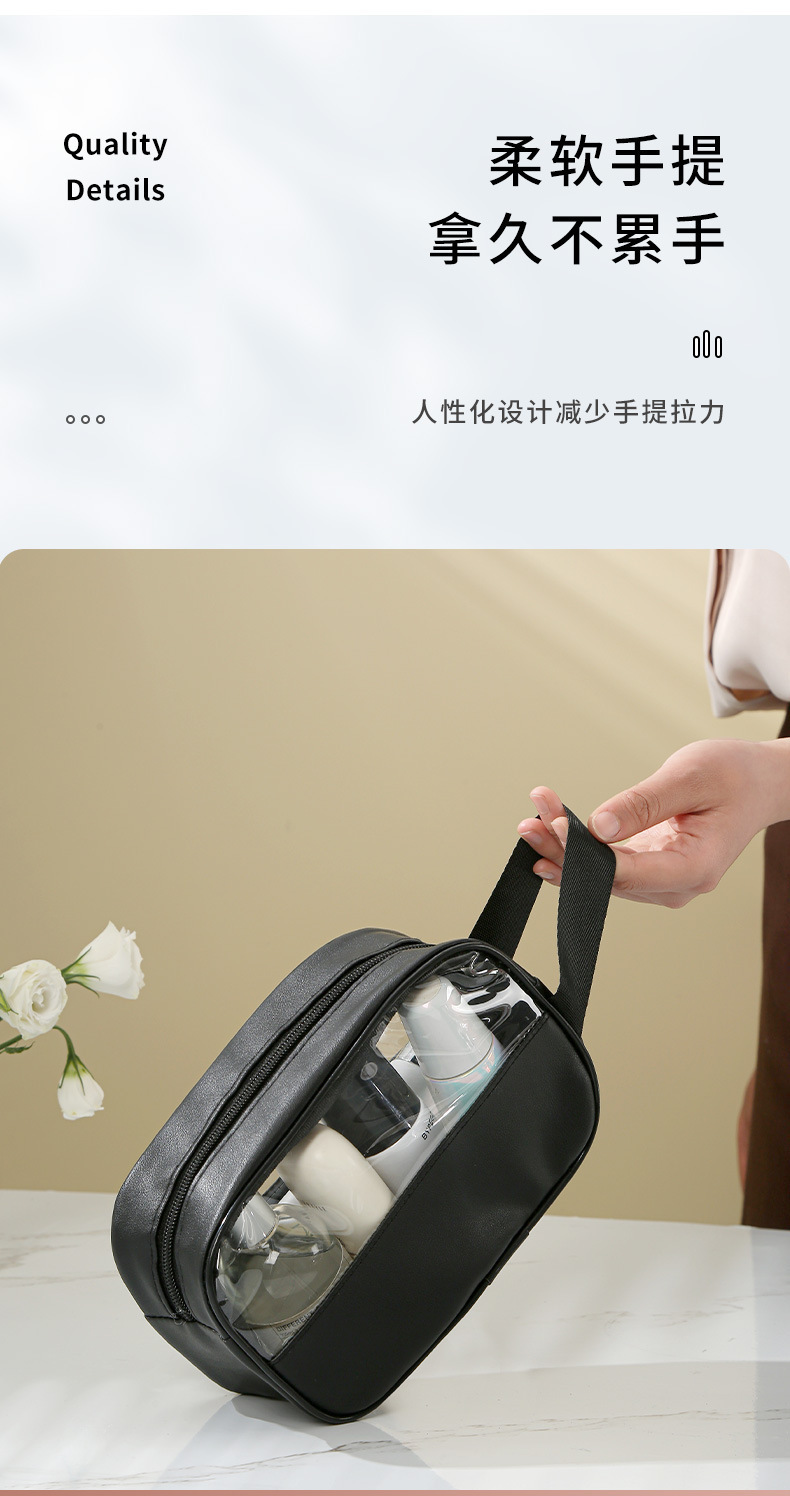 新款PVC半透明拼接化妆包 大容量洗浴包PU防水手提便携旅行收纳袋