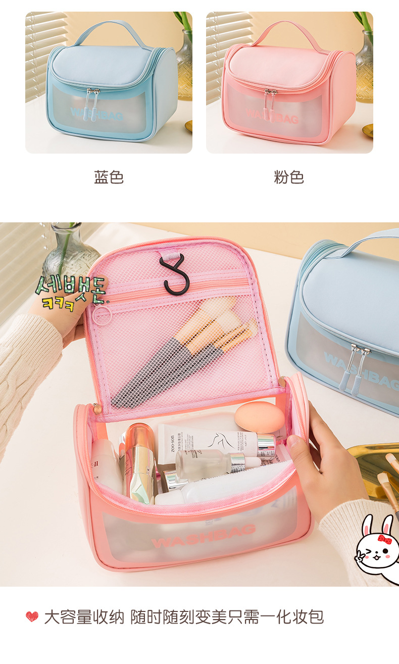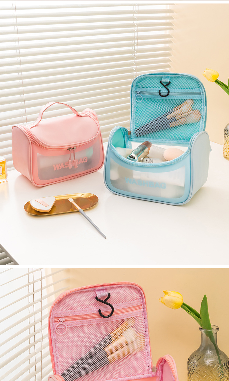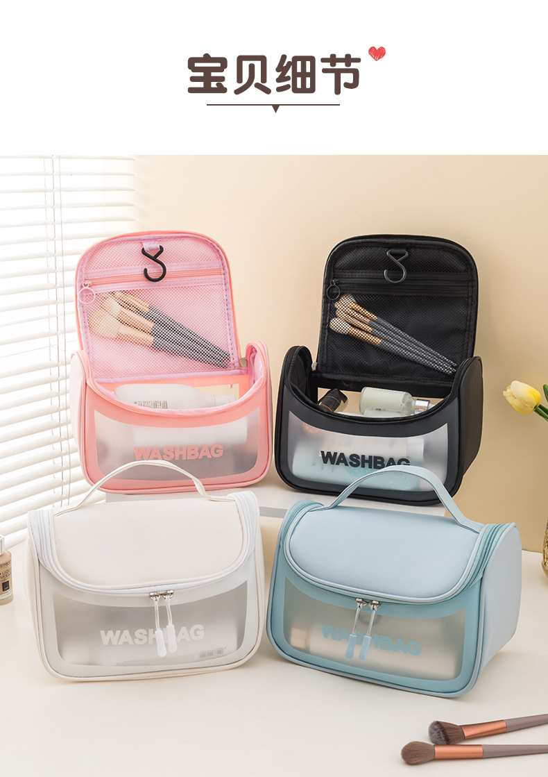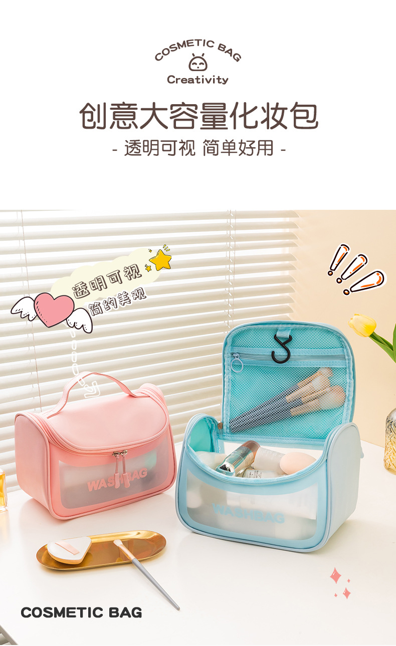 新款透明化妆包磨砂洗漱包pu翻盖半透明便携收纳包女洗浴袋PVC