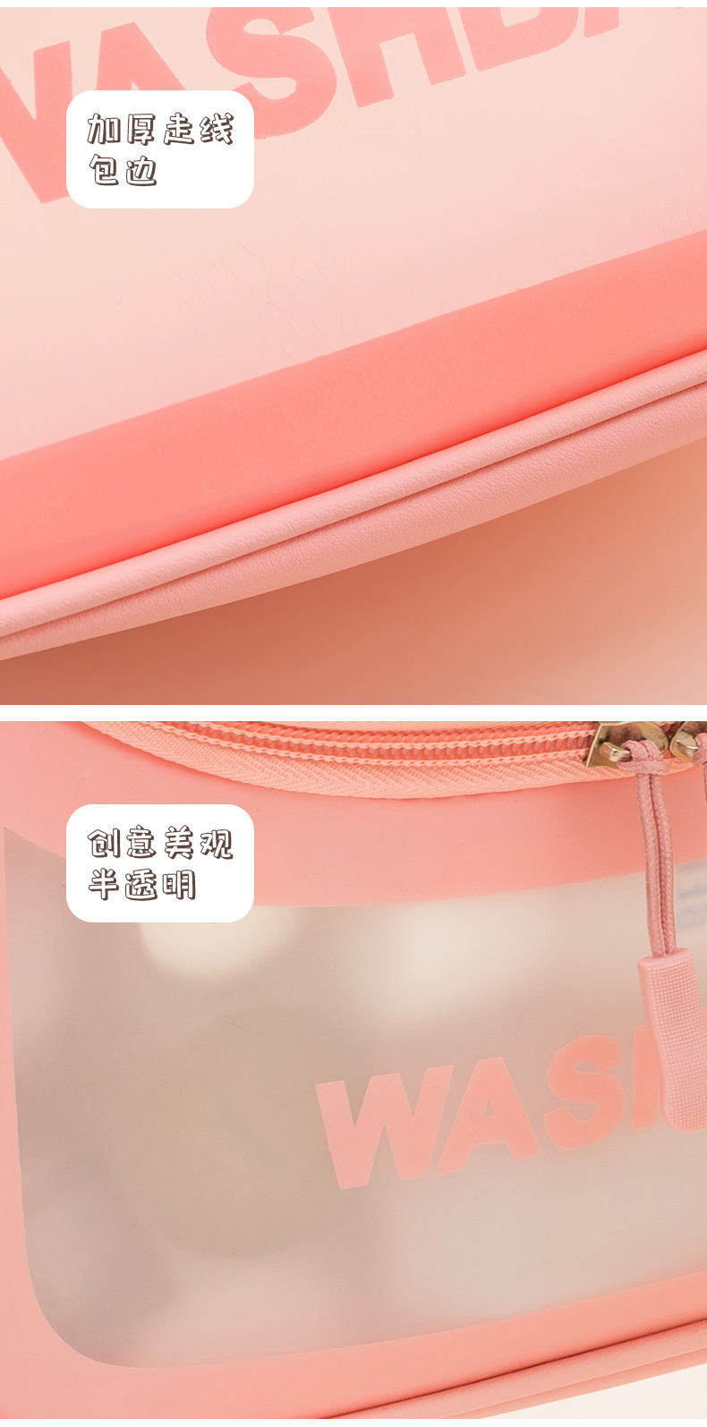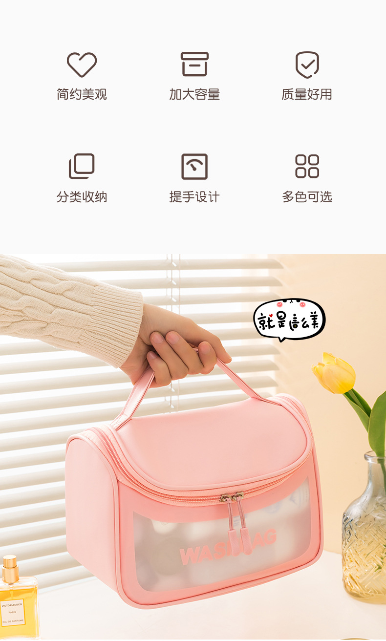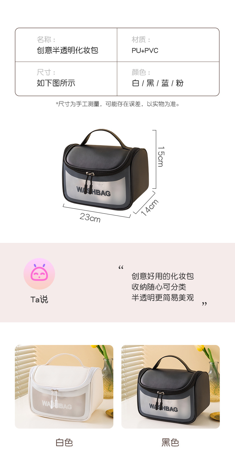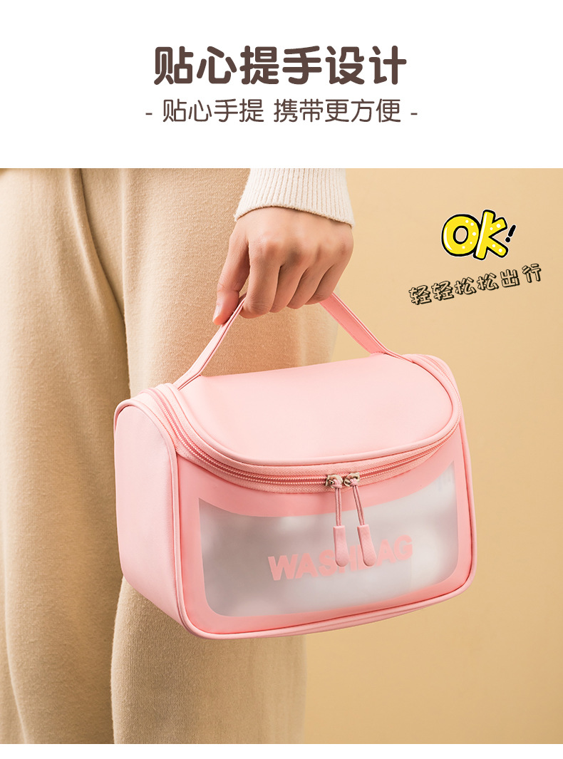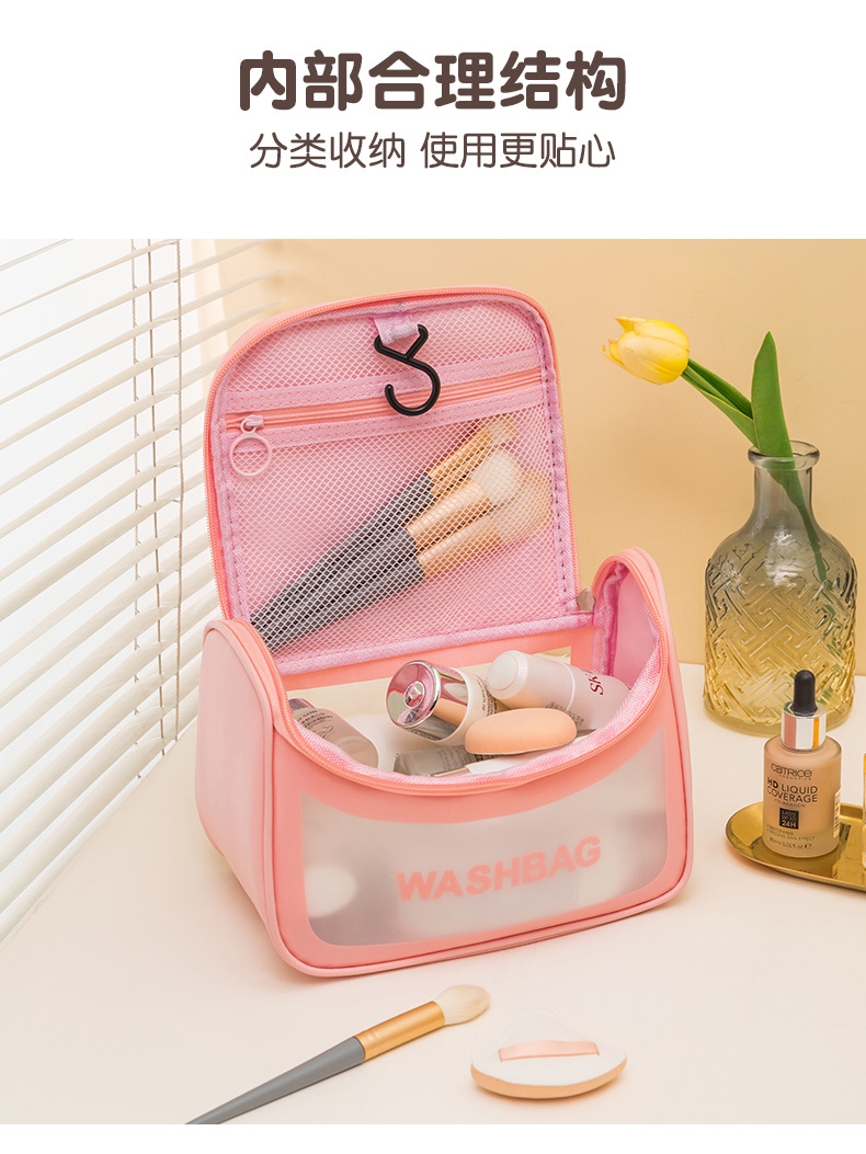 新款透明化妆包磨砂洗漱包pu翻盖半透明便携收纳包女洗浴袋PVC