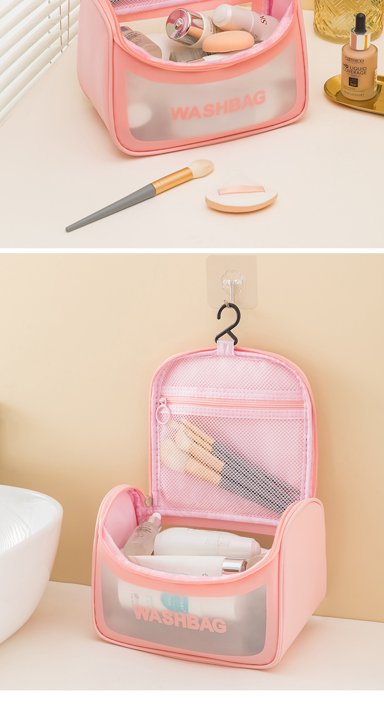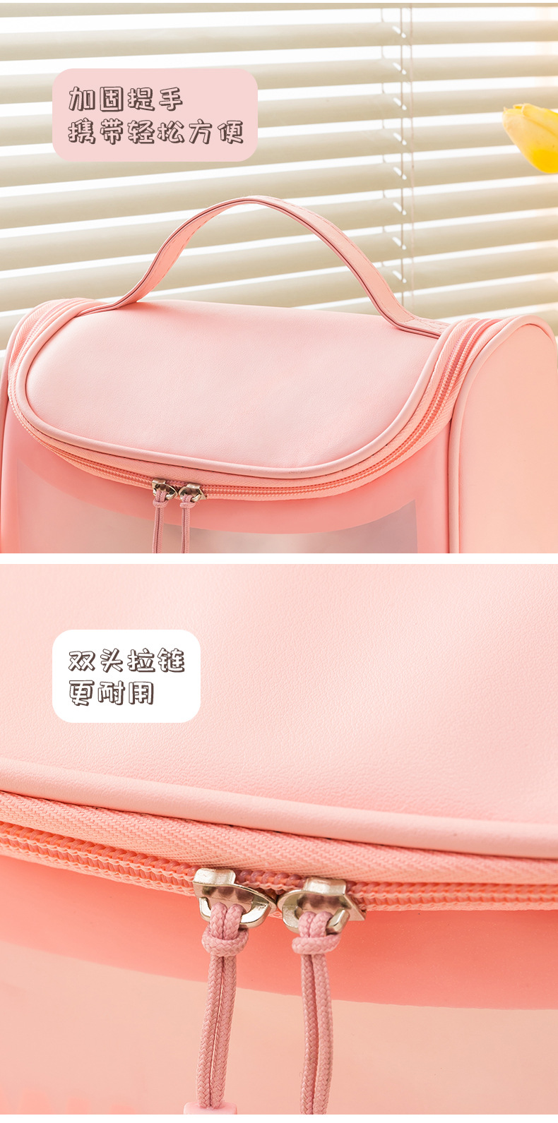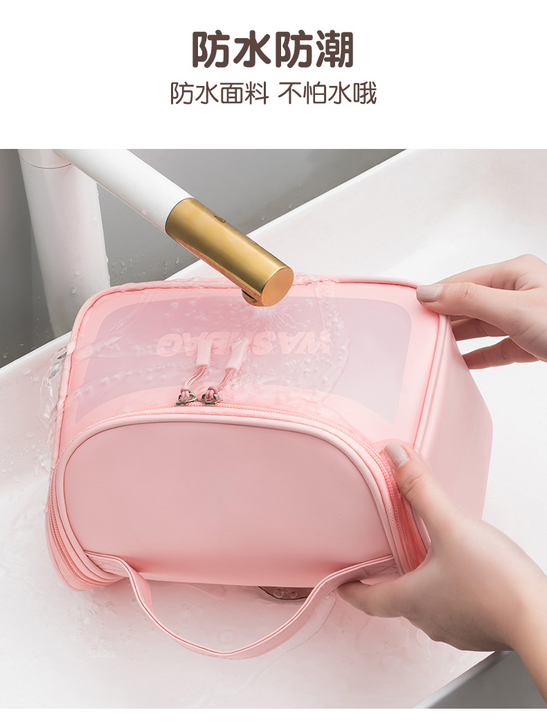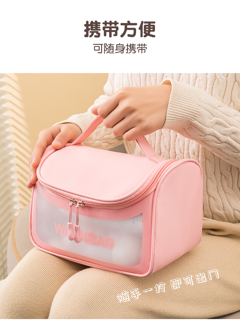 新款透明化妆包磨砂洗漱包pu翻盖半透明便携收纳包女洗浴袋PVC