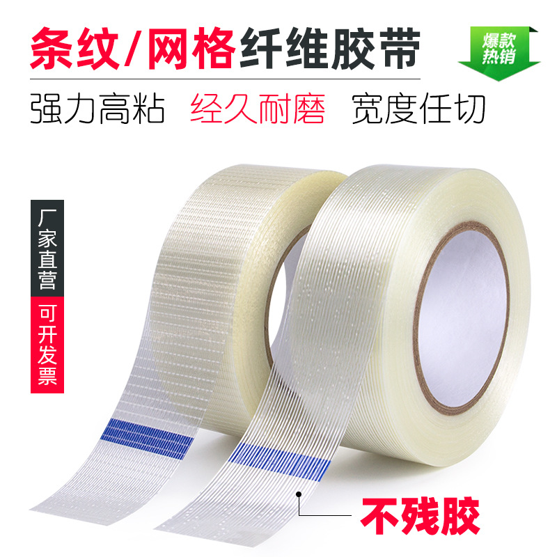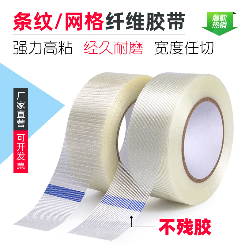 维迗强力网格纤维胶带PET耐高温不残留条纹8195K透明封箱纤维胶带