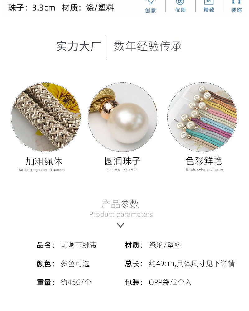 珍珠窗帘绑带绑绳批发轻奢布艺装饰系带窗帘扣可调节收拢扎束带