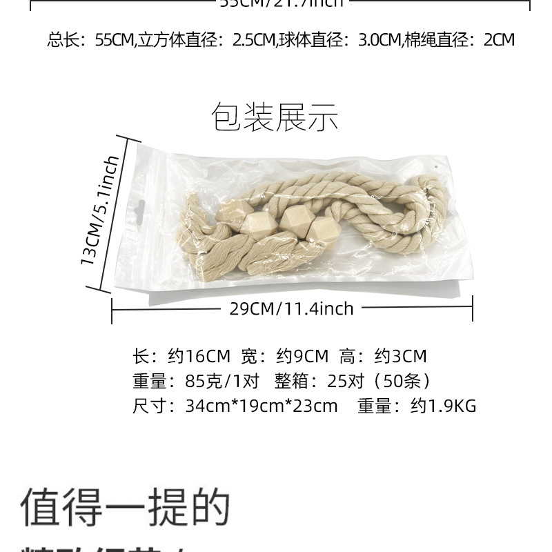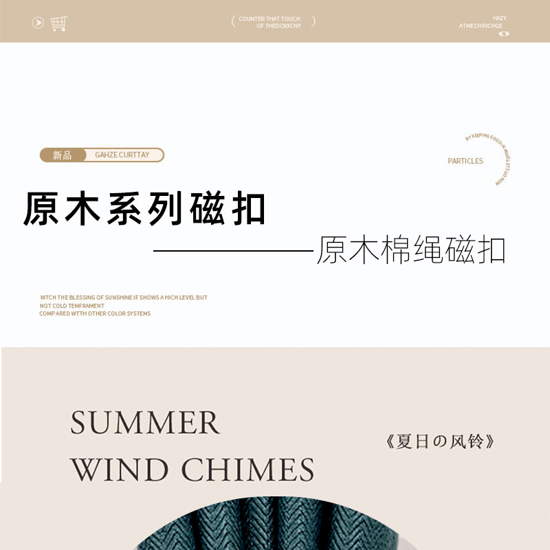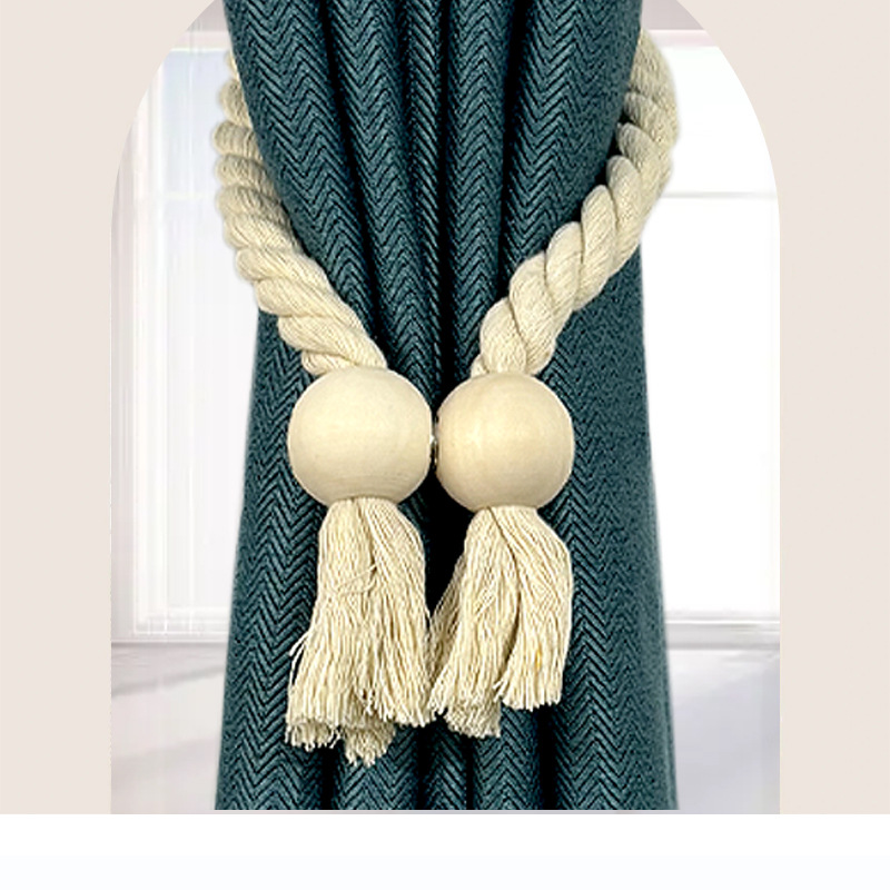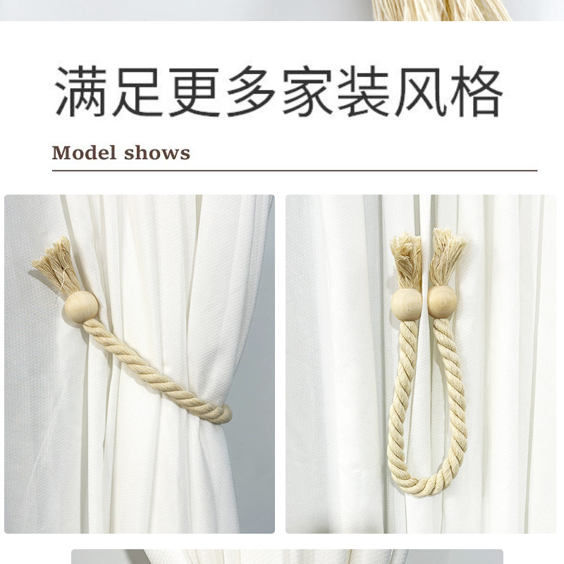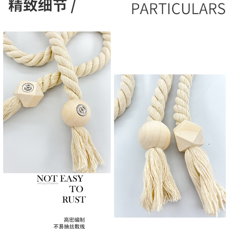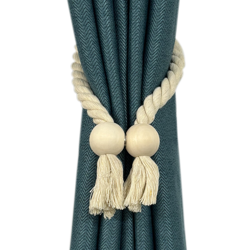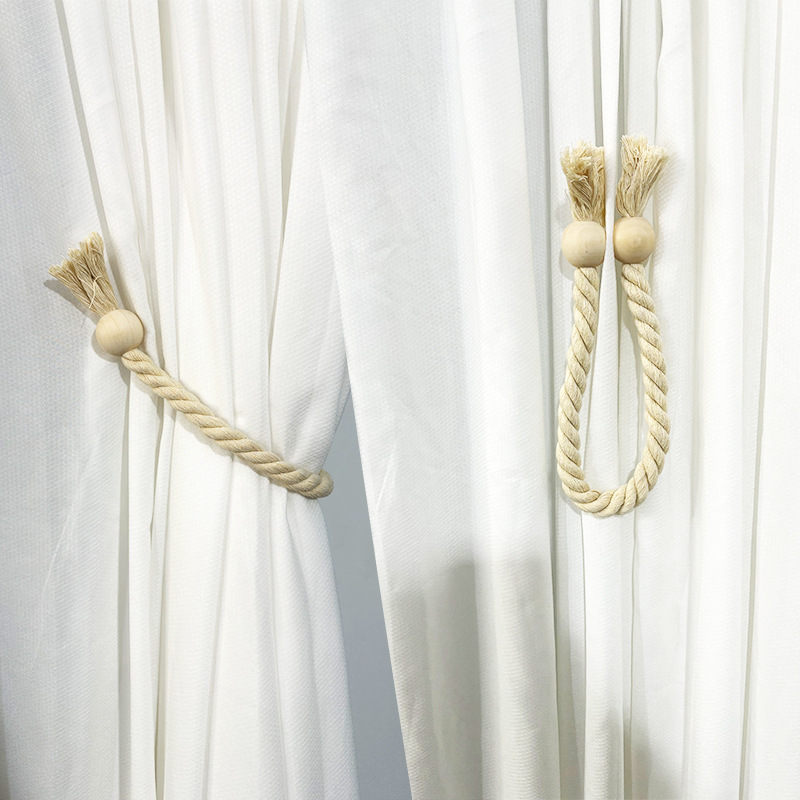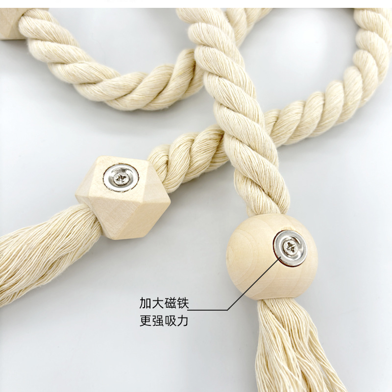 新款跨境货源田园风窗帘绑带原木强磁免打孔磁吸扣绑绳扎带一对装