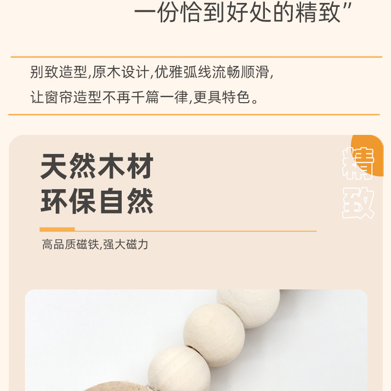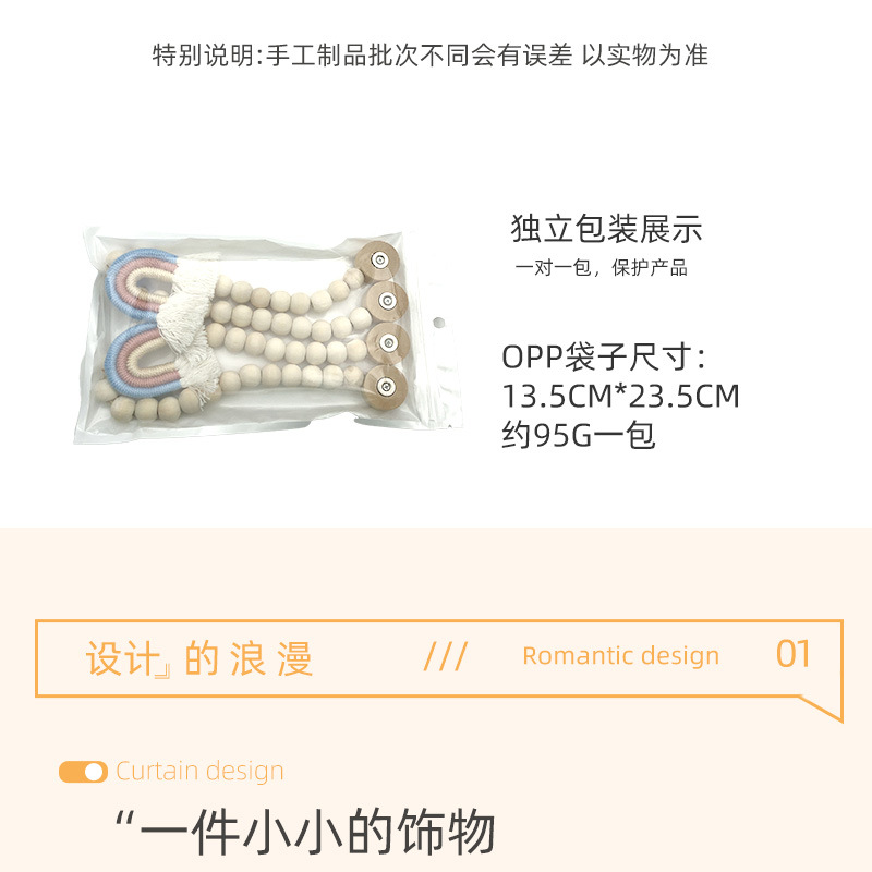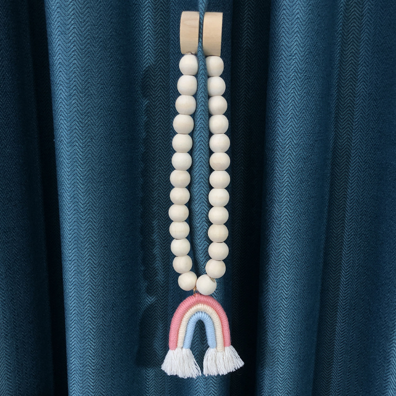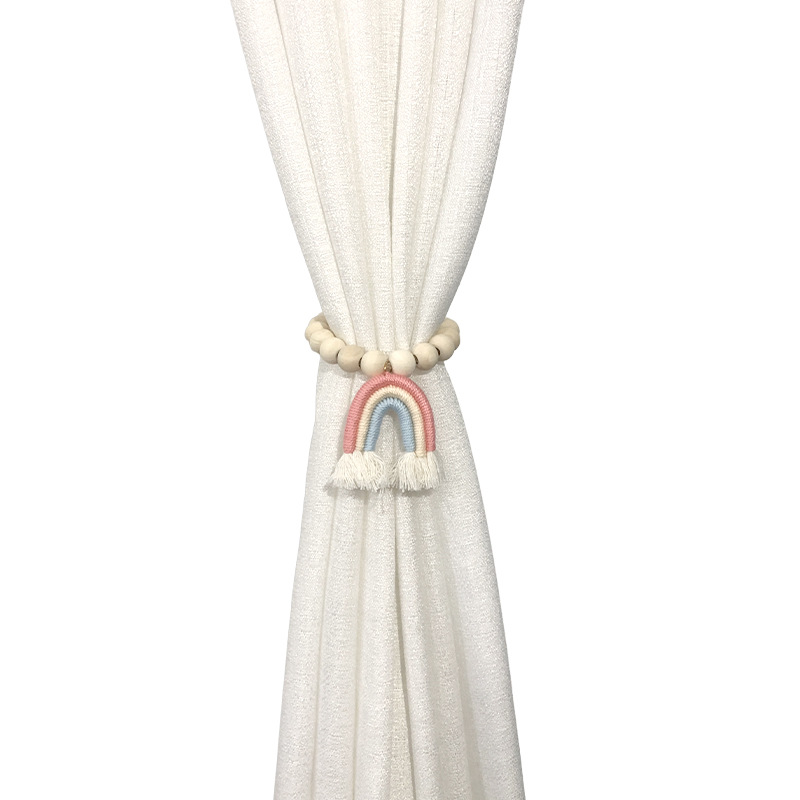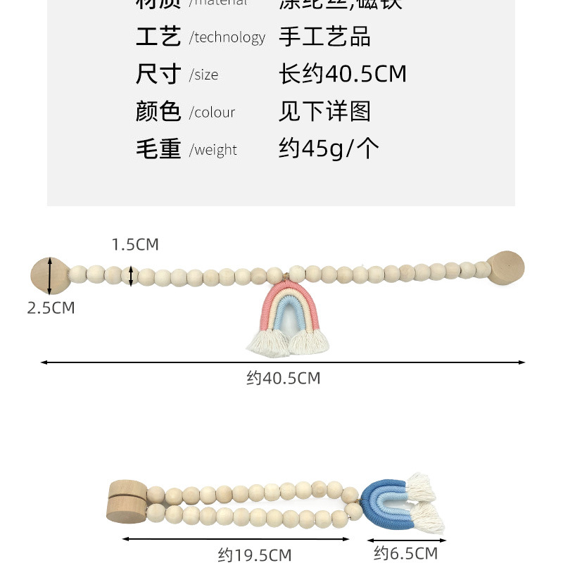 2023新款时尚卡通彩虹流苏木珠窗帘磁扣跨境家居窗帘磁铁绑带绑绳