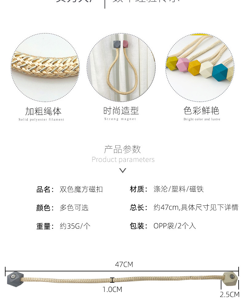新款双色磁扣现代简约轻奢磁吸窗帘扣创意扎束带绑绳收拢带绑饰品