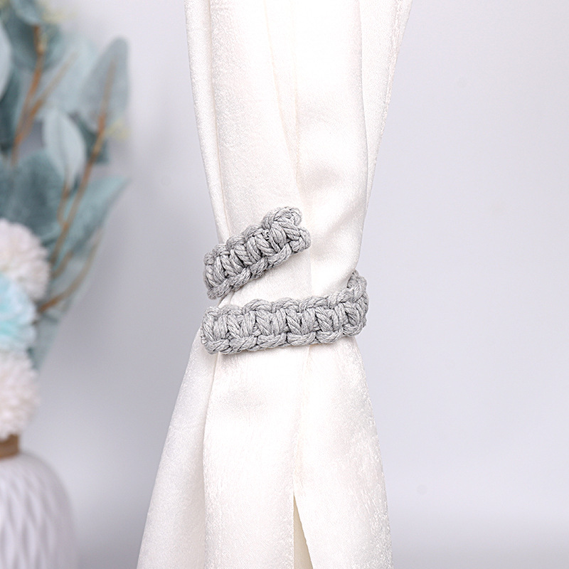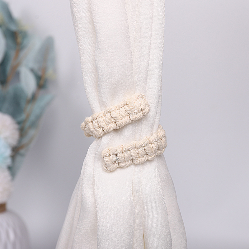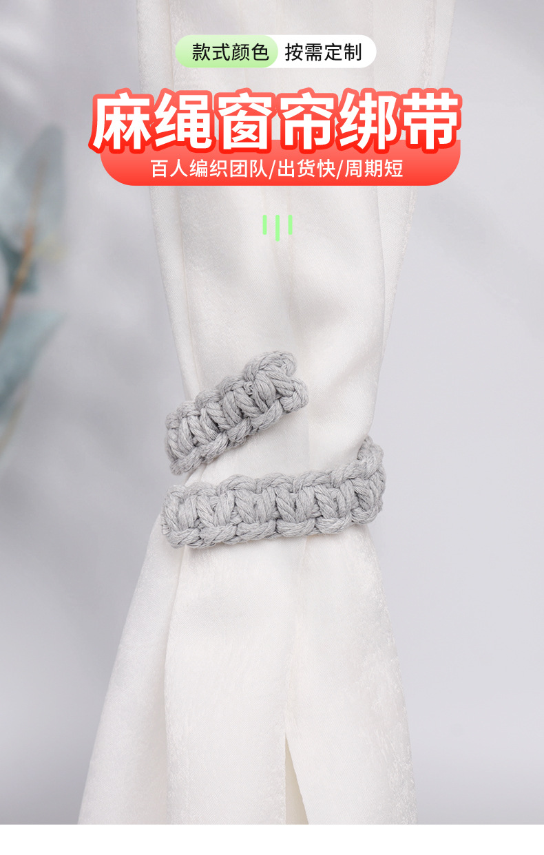 跨境批发窗帘绑带北欧风棉麻绳扭花手工编织窗帘夹窗帘绑带