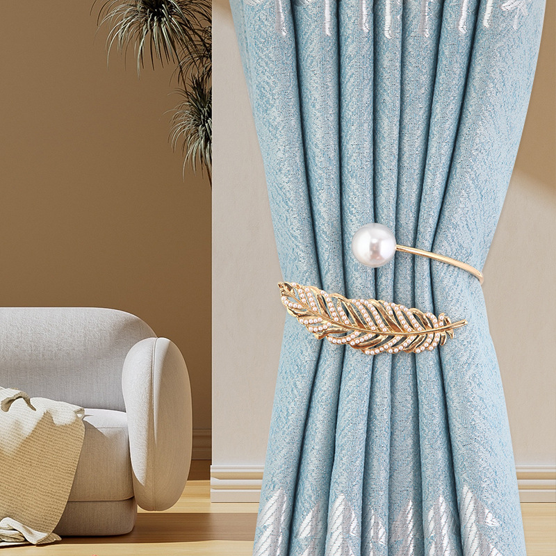 新款轻奢窗帘绑带树叶金属满珍珠羽毛珍珠磁吸窗帘扣窗帘夹批发