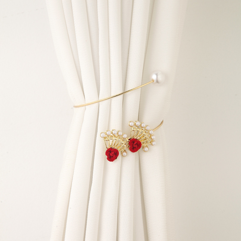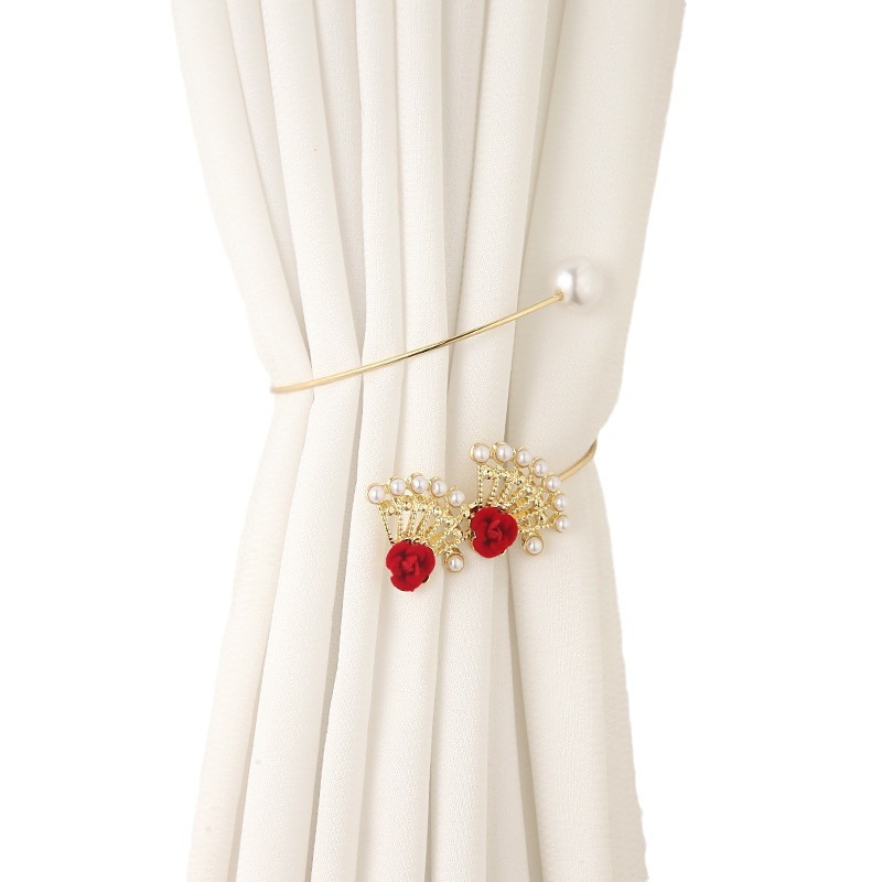 简约珍珠贝壳版金属窗帘扣窗帘绑带弹簧可调节窗帘夹厂家批发