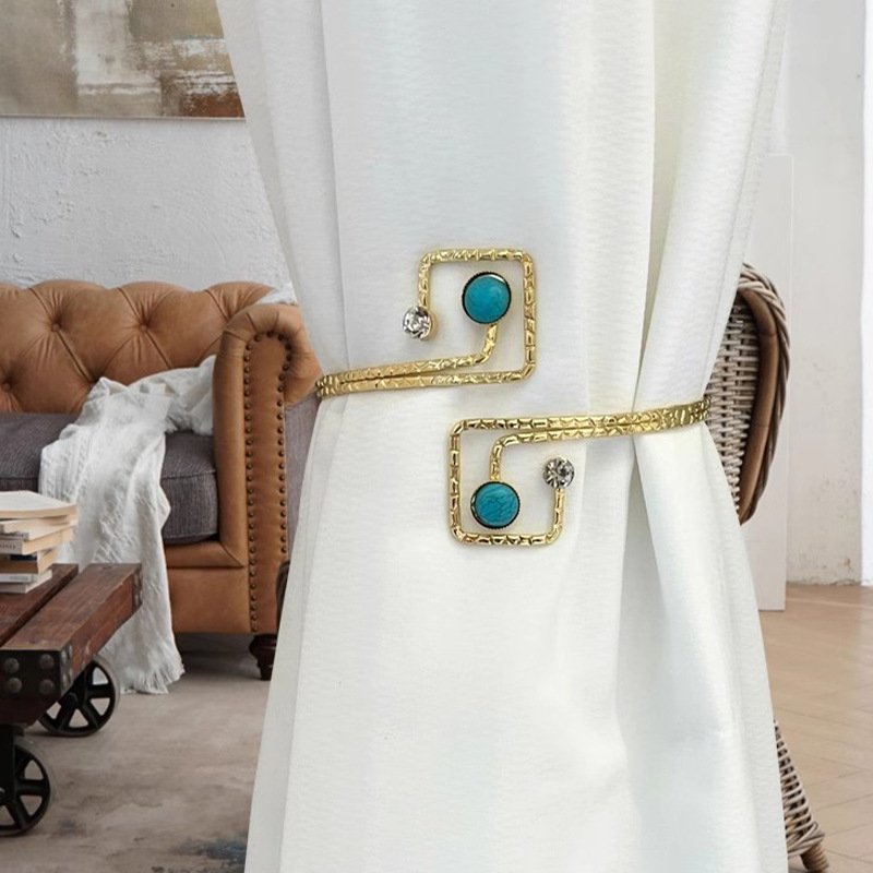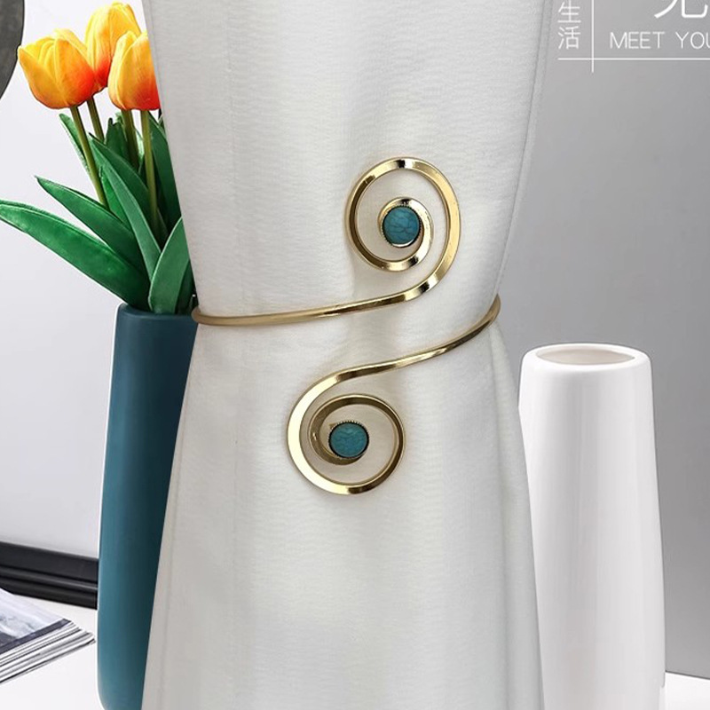 简约松石蓝色珠金属窗帘扣窗帘绑带弹簧自动收紧窗帘夹厂家批发