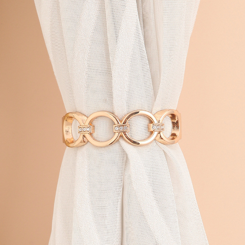 热销新款简约窗帘绑带金属镂空镶钻弹簧窗帘扣免打孔窗帘夹批发