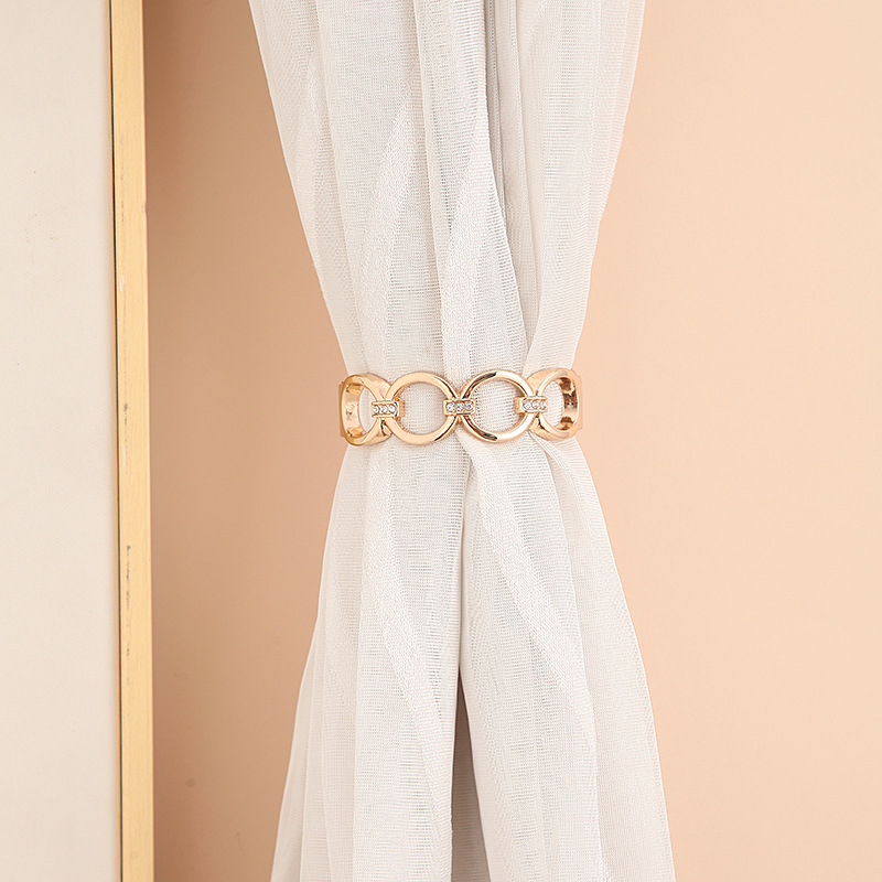 热销新款简约窗帘绑带金属镂空镶钻弹簧窗帘扣免打孔窗帘夹批发