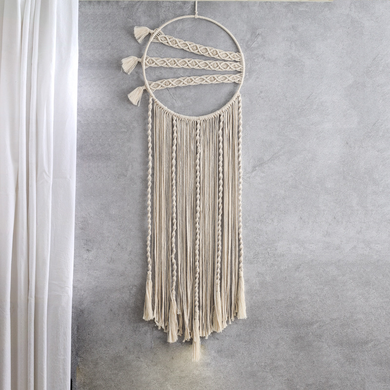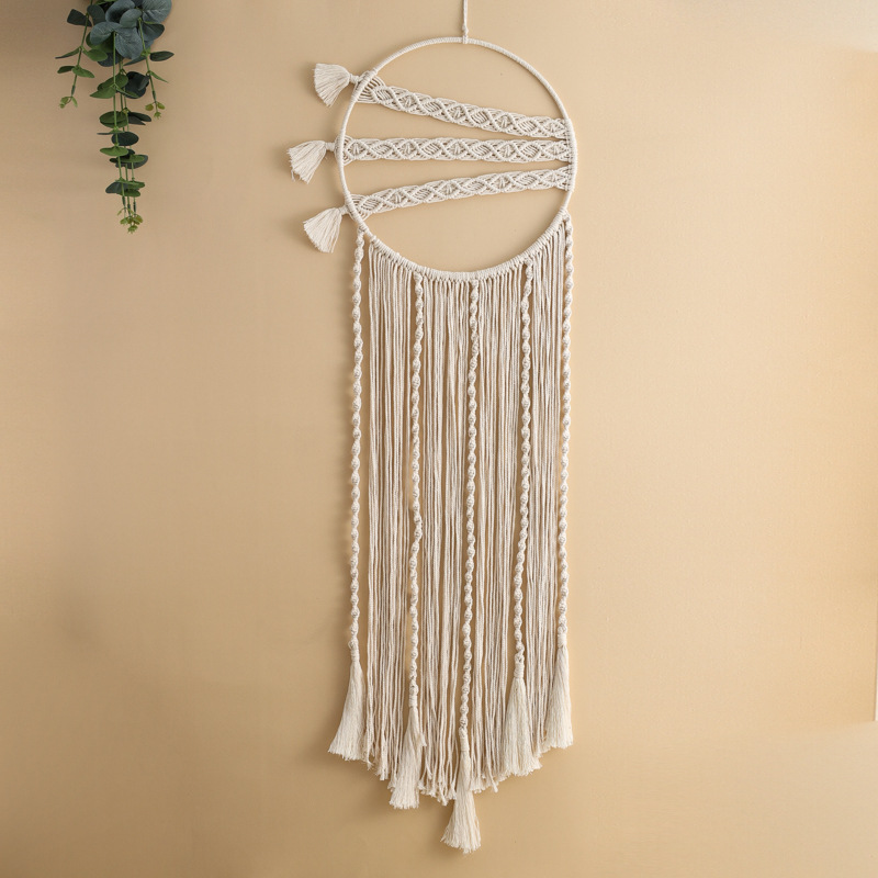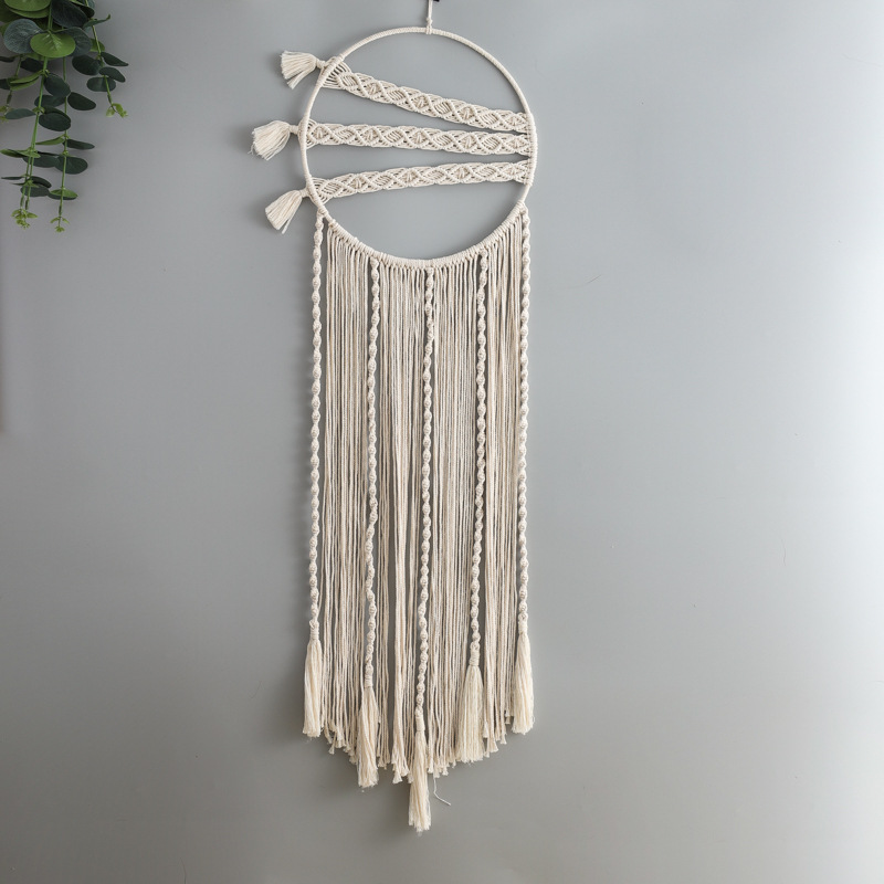 创意圆环编织流苏米白色捕梦网 家居墙壁挂饰捕梦网 手工礼品装饰