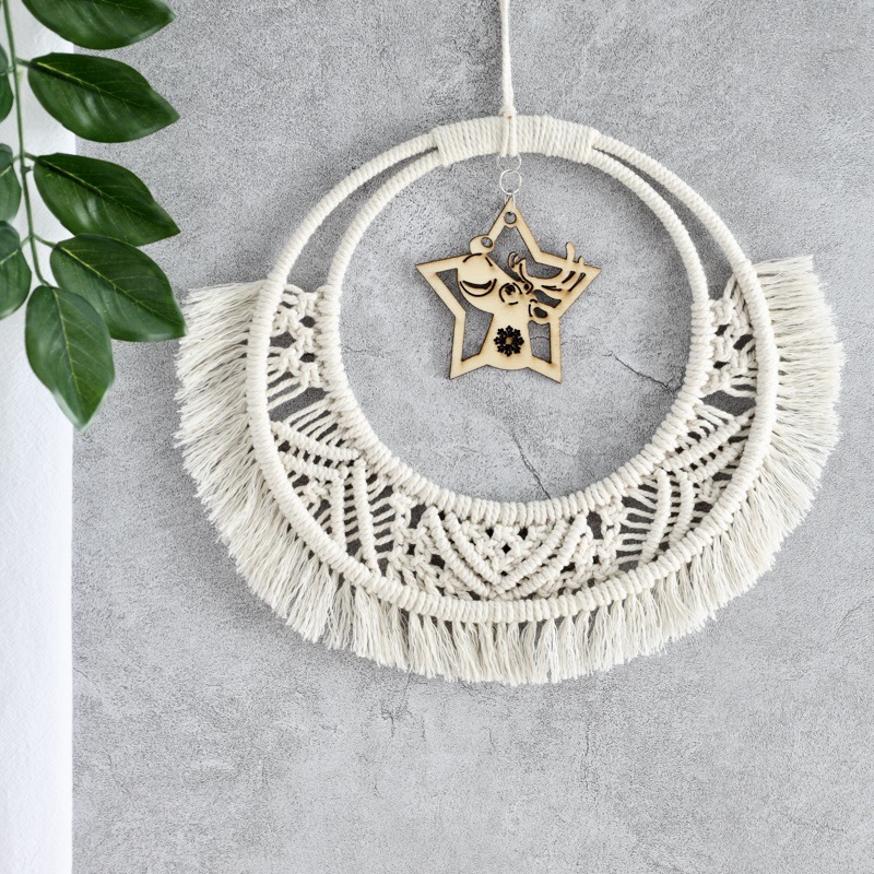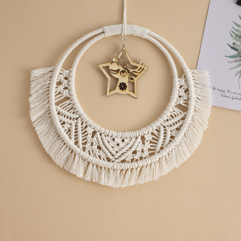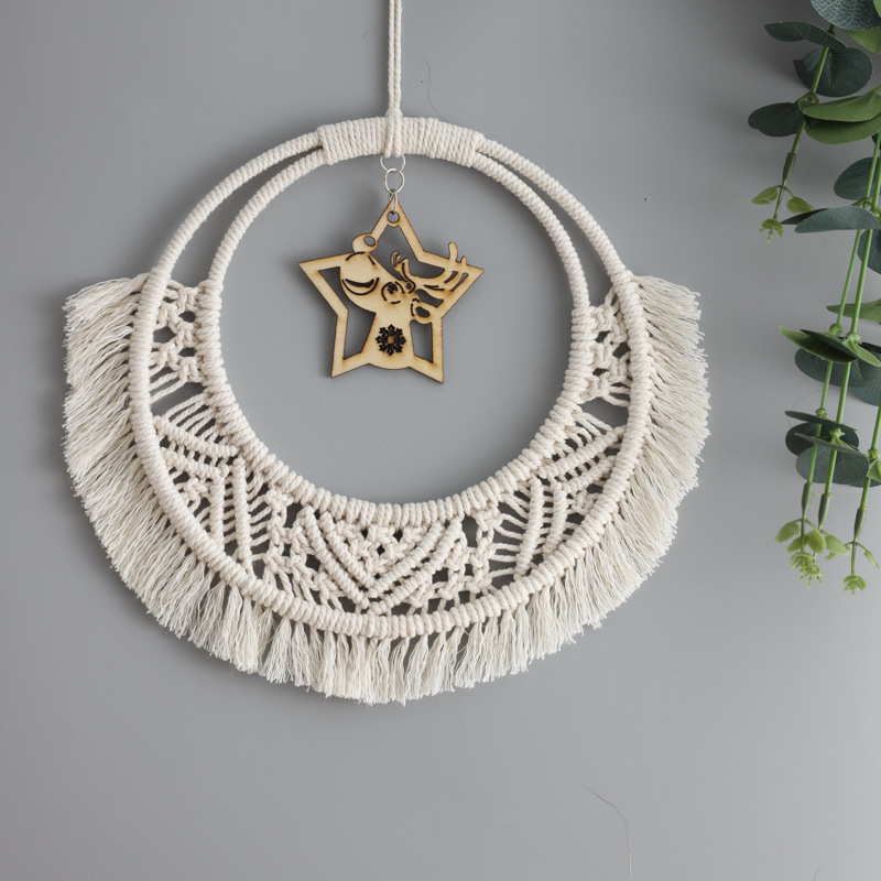 双层圆圈编织短流苏挂件 卧室墙壁五角星吊坠捕梦网挂件 手工礼品