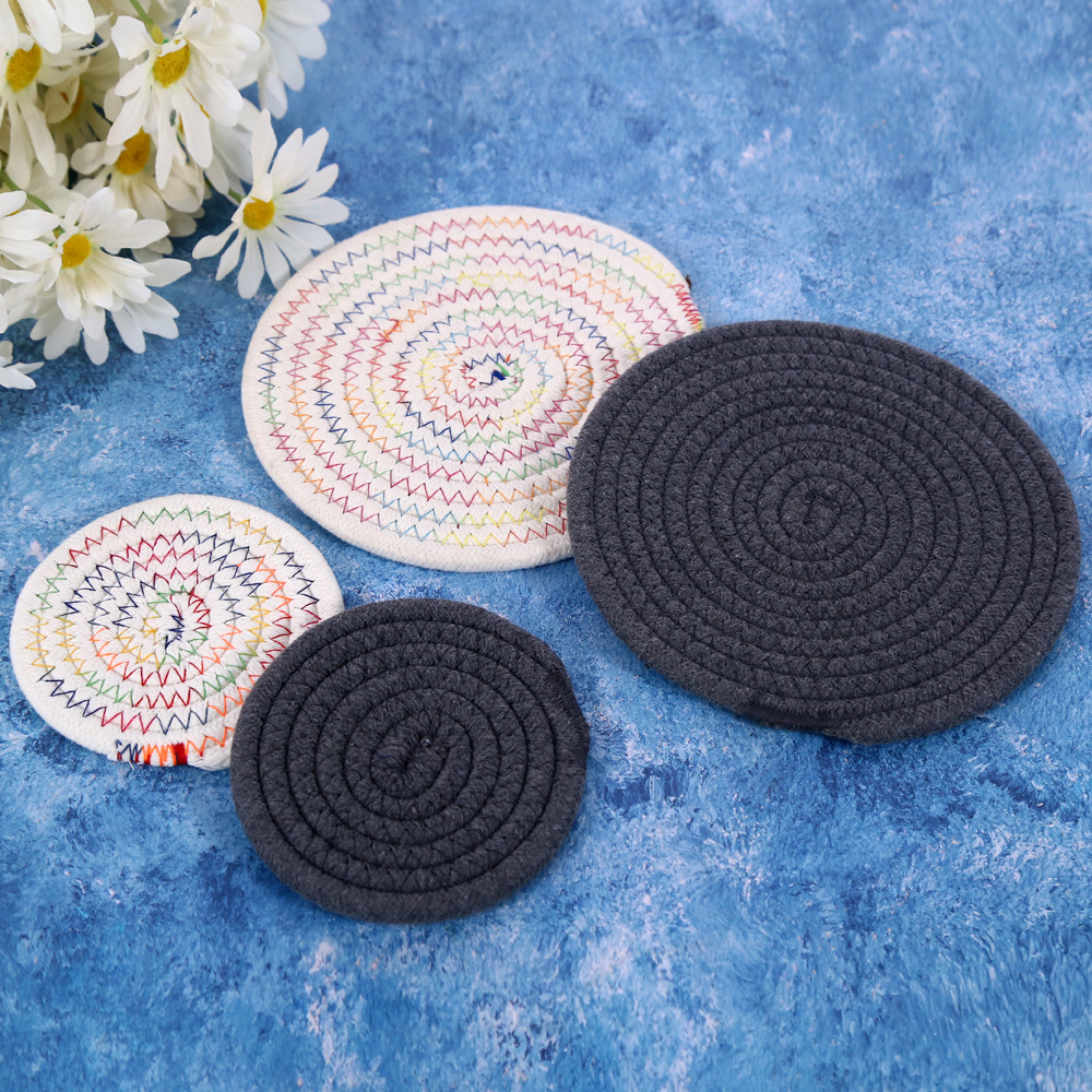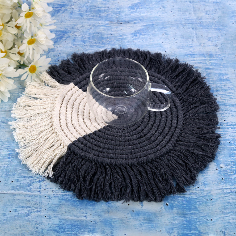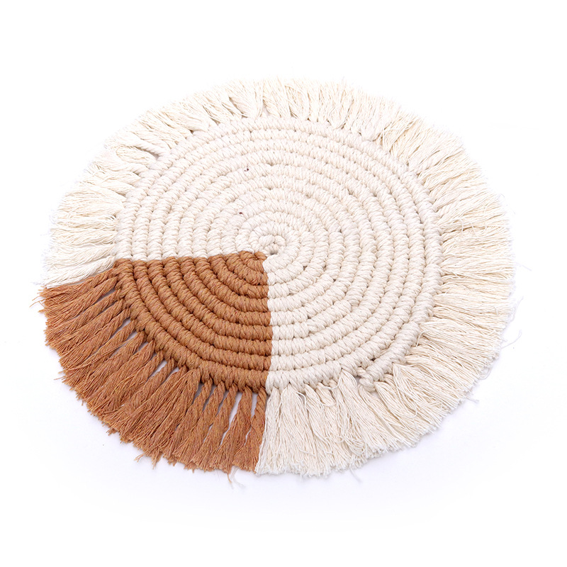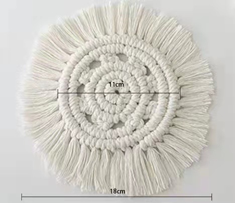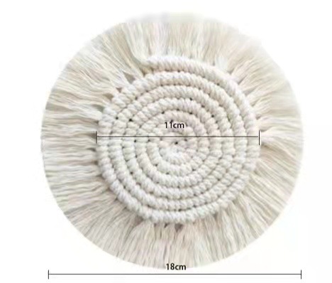 跨境棉绳编织杯垫 手工编织加厚隔热垫波西米亚餐垫 圆形流苏杯垫