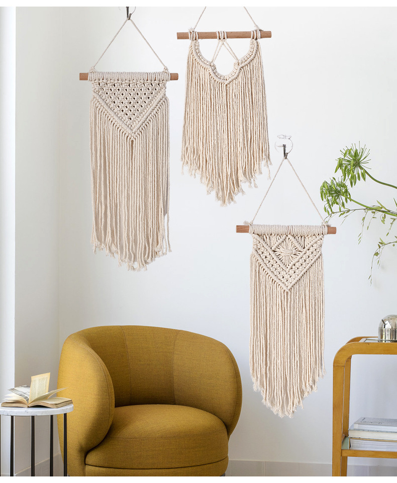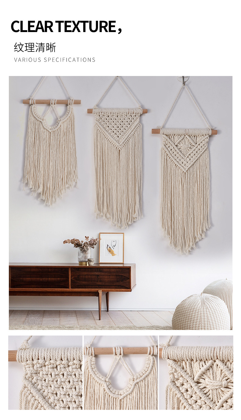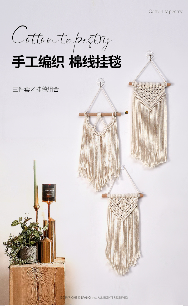 北欧墙面装饰手工编织挂毯 跨境波西米亚装饰流苏小挂毯亚马逊