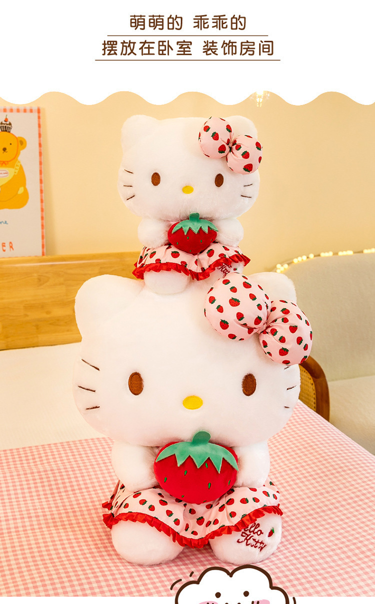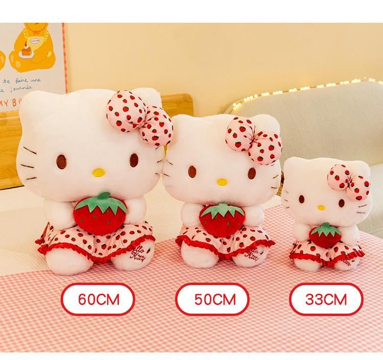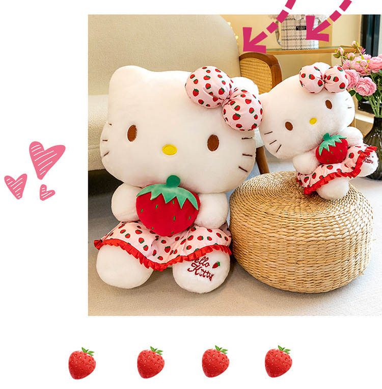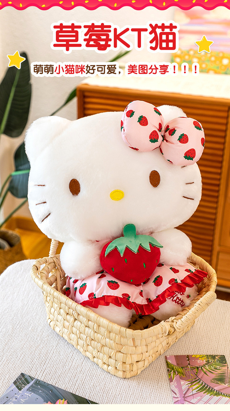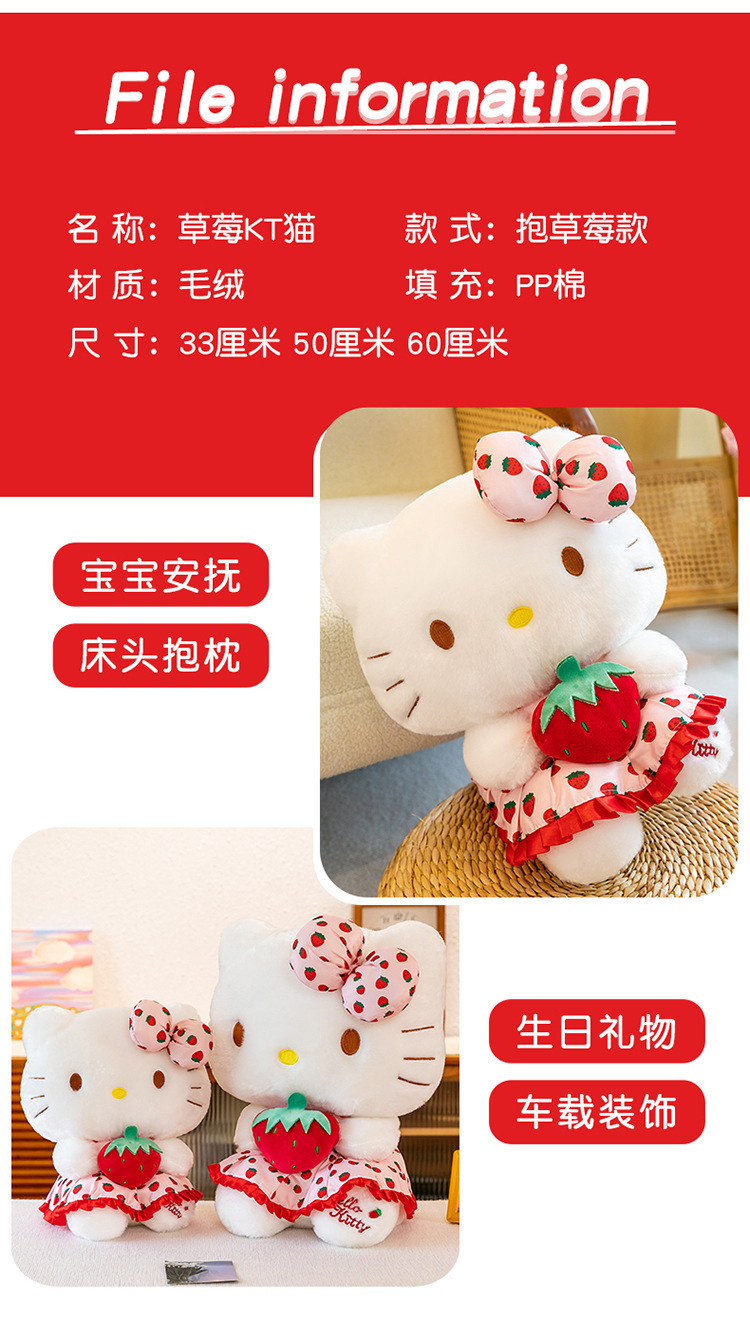 厂家直销新款草莓KT猫公仔毛绒玩具抱枕玩偶凯蒂猫布娃娃女生礼物