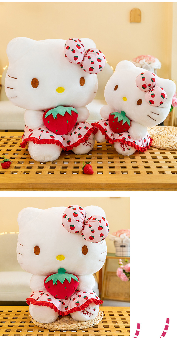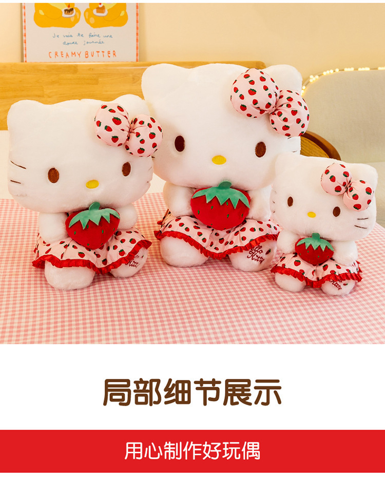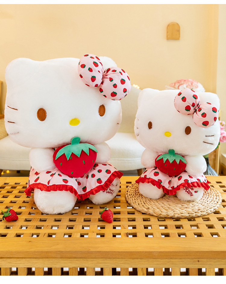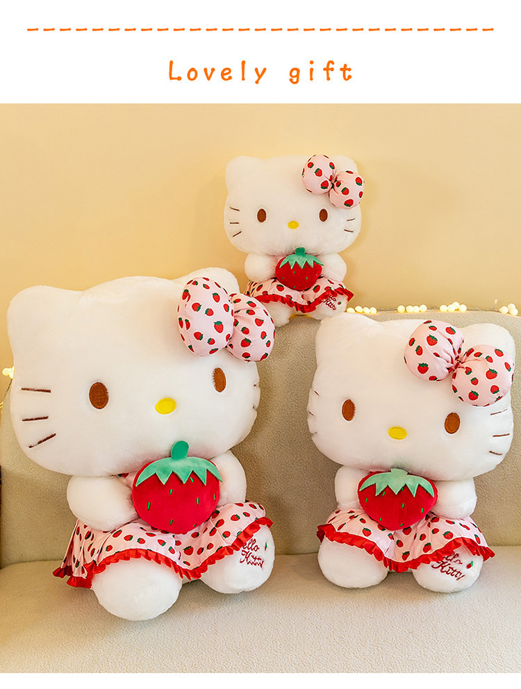 厂家直销新款草莓KT猫公仔毛绒玩具抱枕玩偶凯蒂猫布娃娃女生礼物