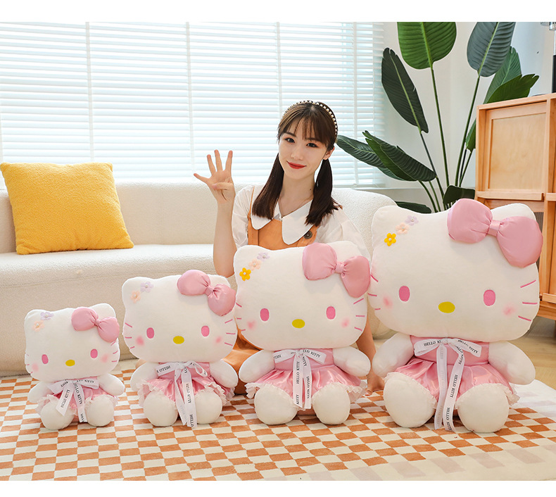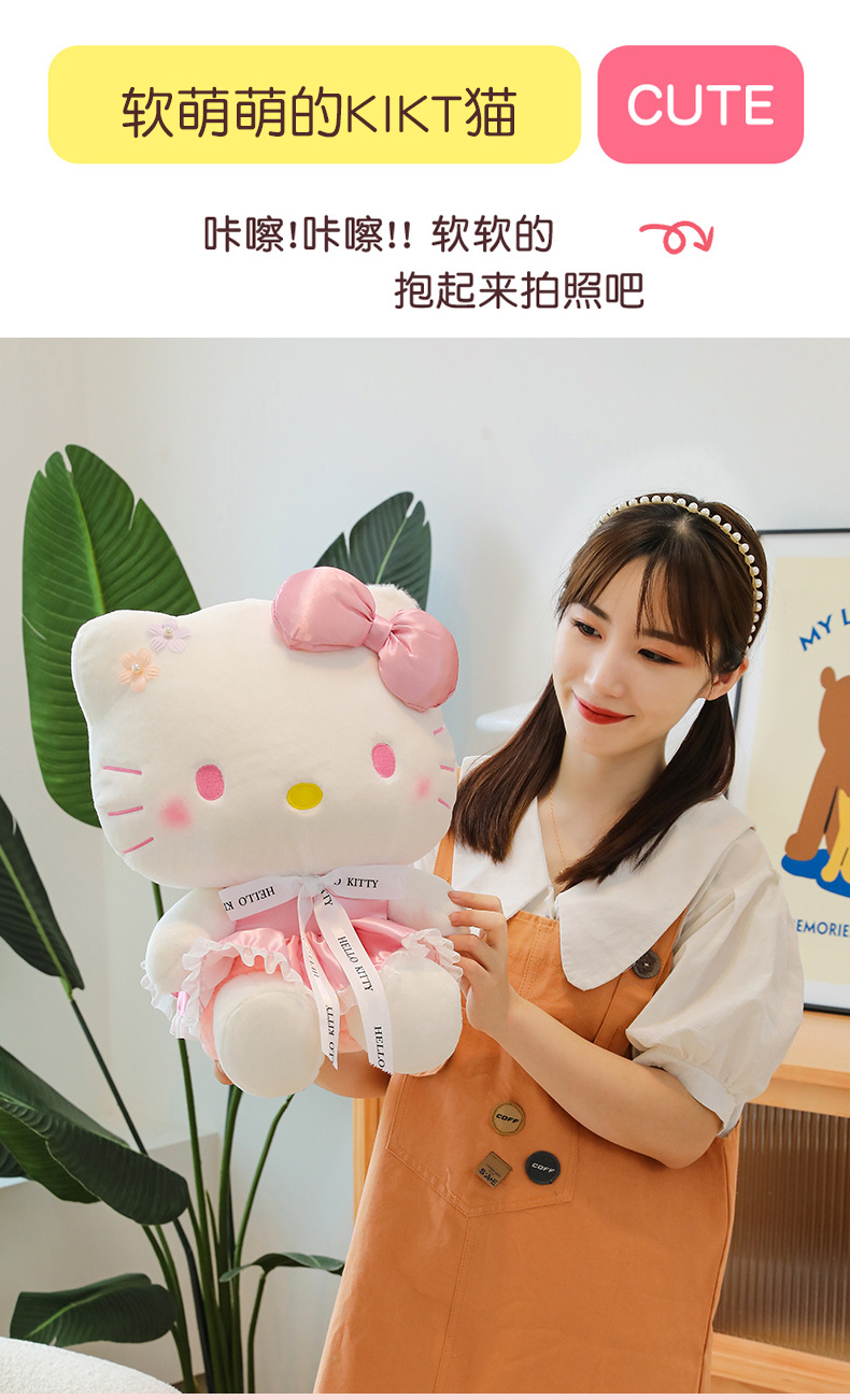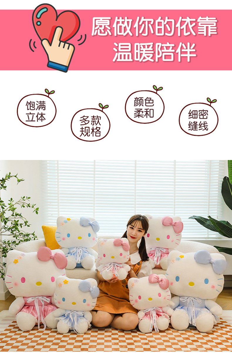 花朵kt公仔可爱hello kitty玩偶凯蒂猫毛绒玩具跨境外贸厂家接单