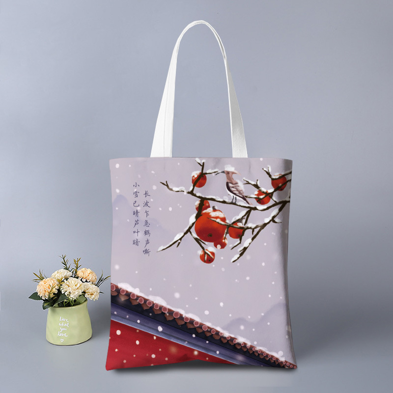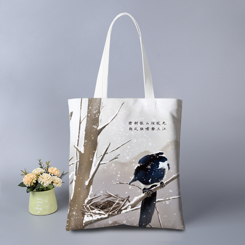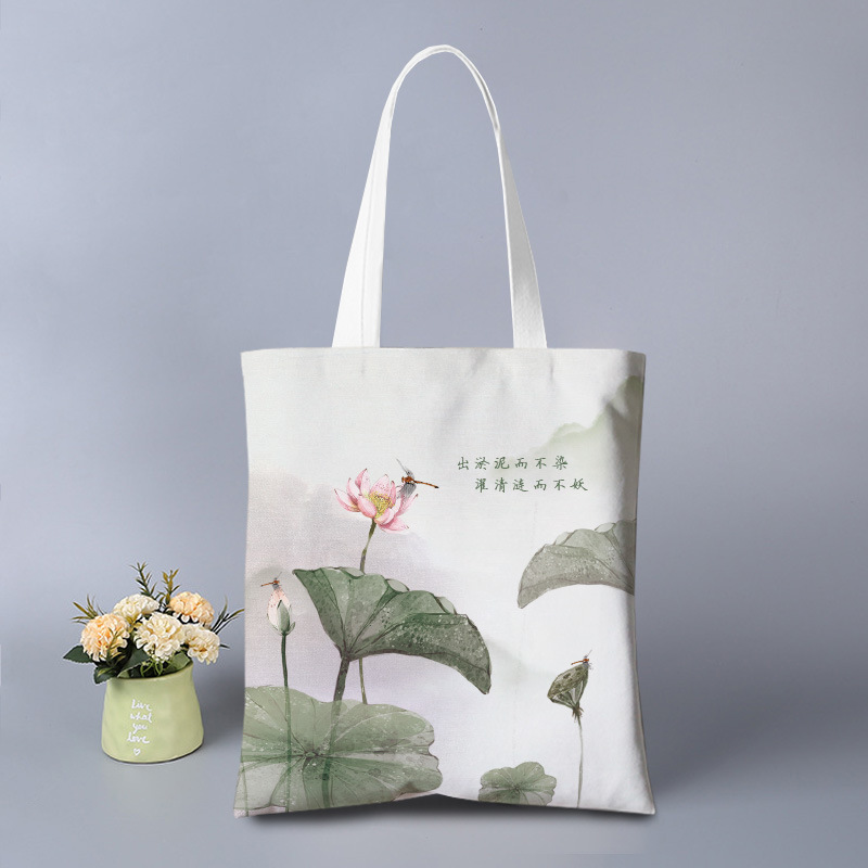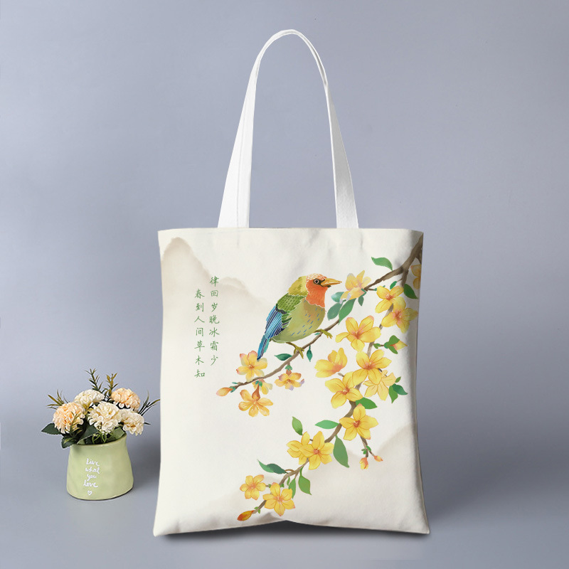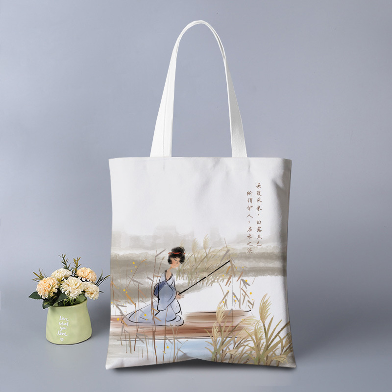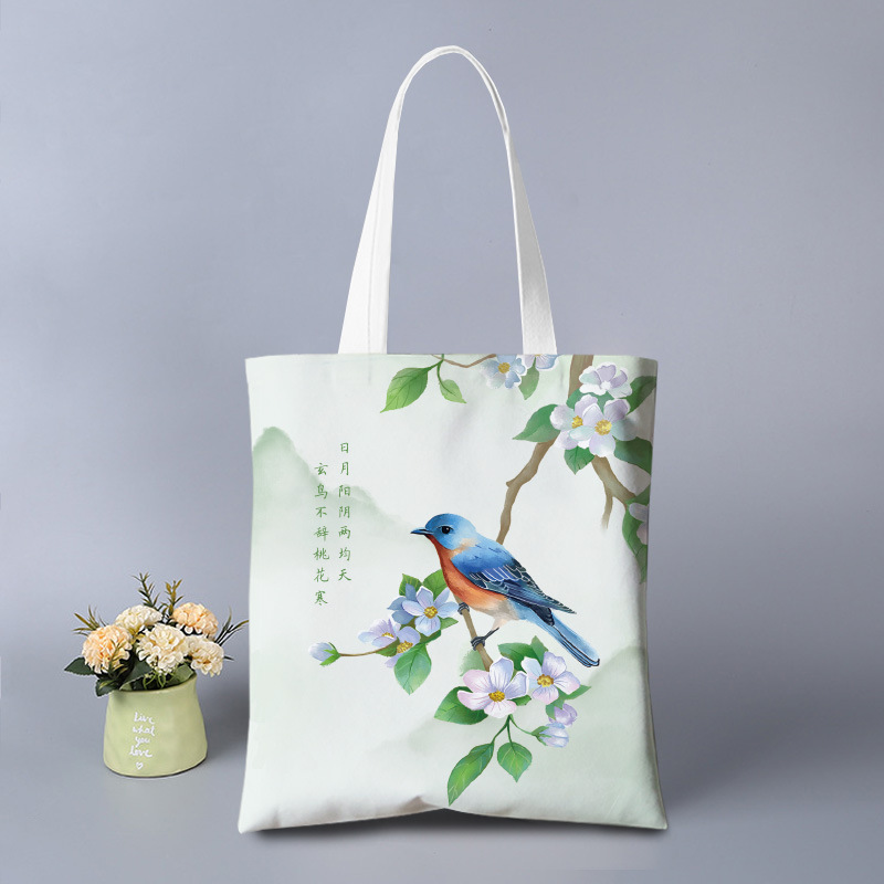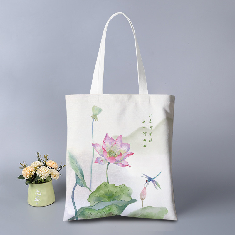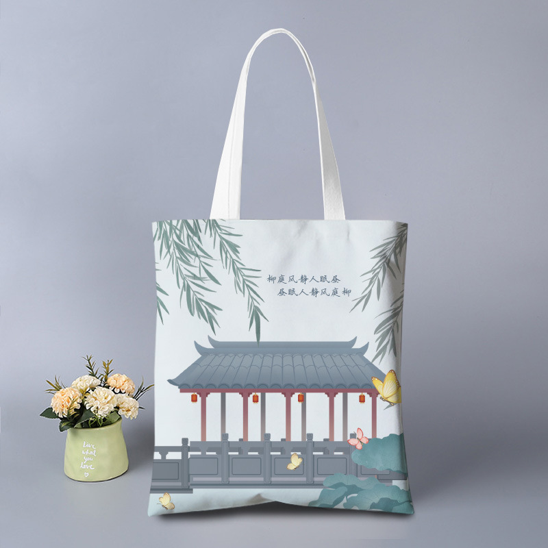 文艺古风帆布包民族风印花手提袋休闲百搭大容量环保袋中国风布包