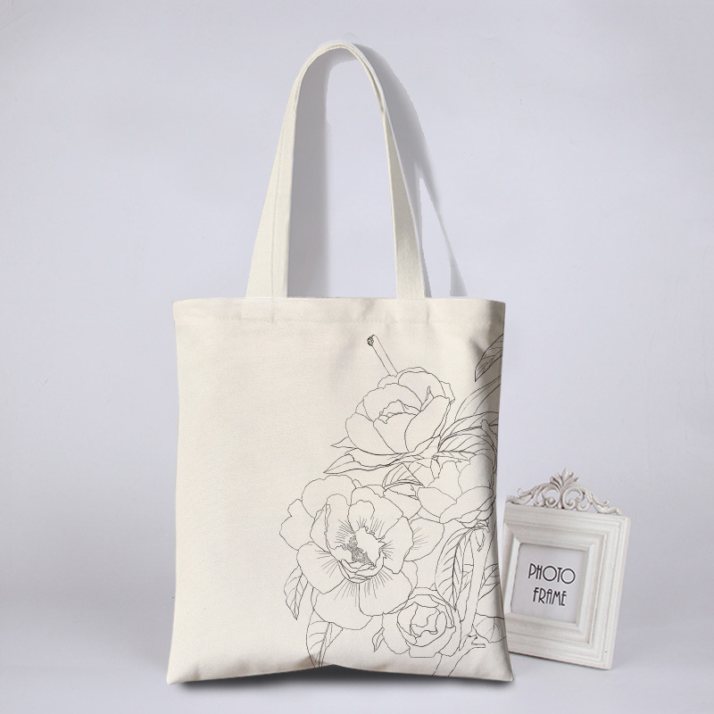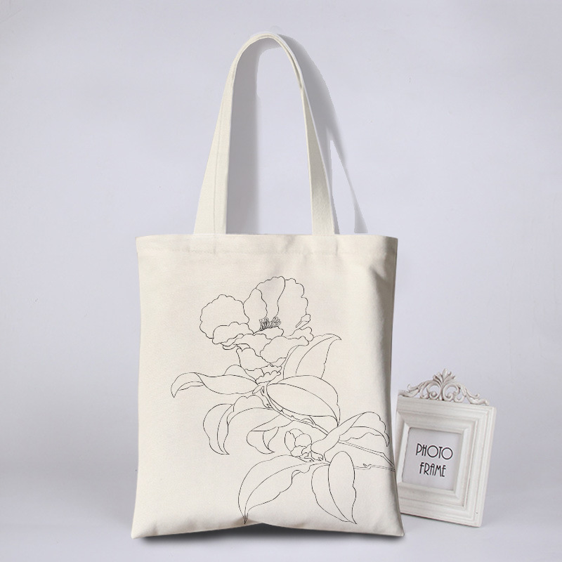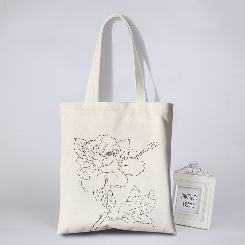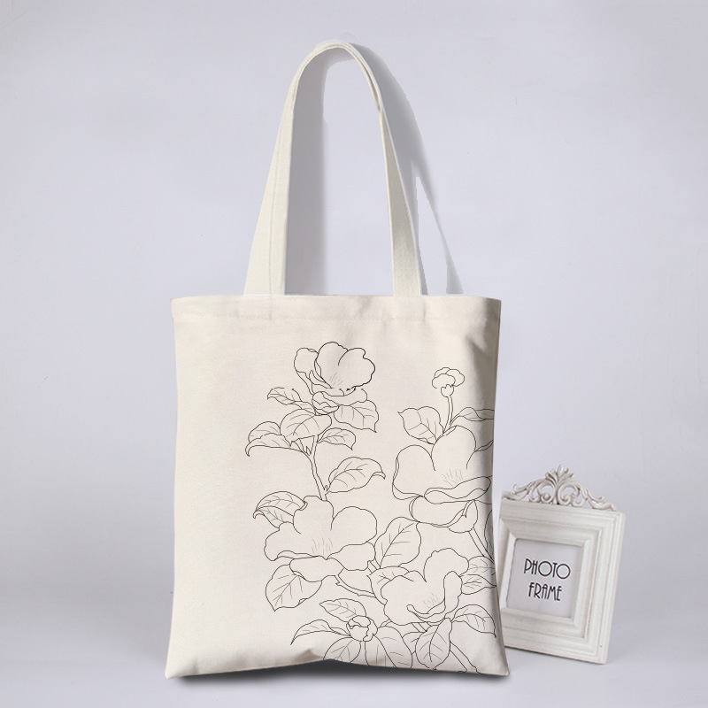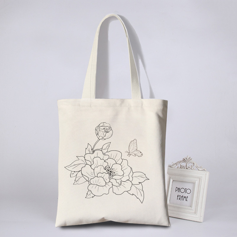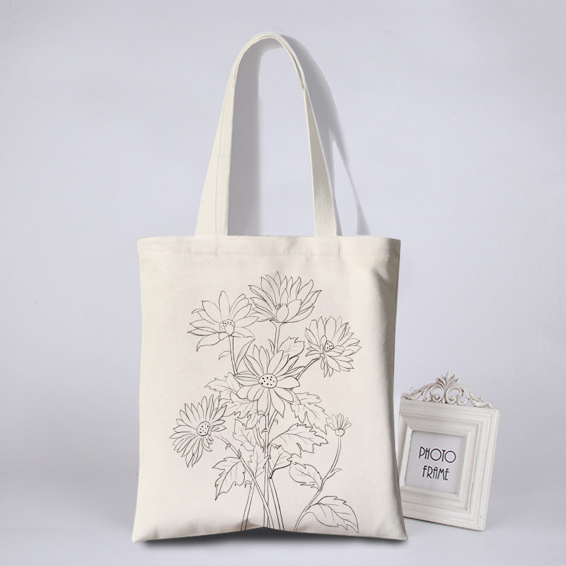 涂鸦彩绘帆布包女花朵简约环保袋活动涂鸦布袋写生DIY手绘帆布袋