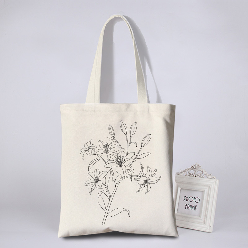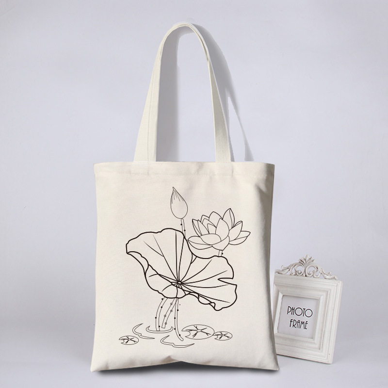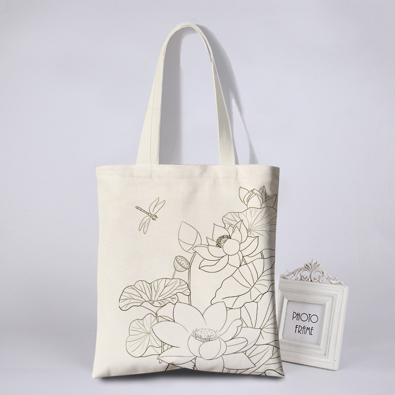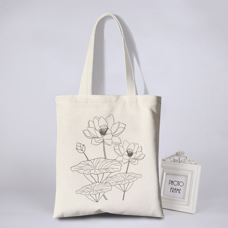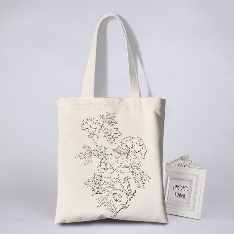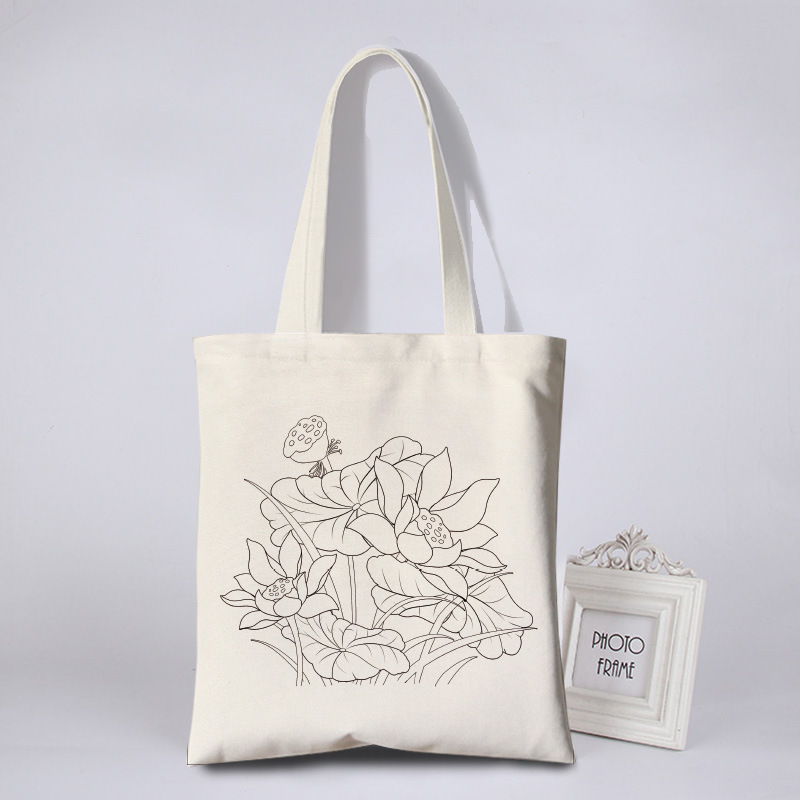 涂鸦彩绘帆布包女花朵简约环保袋活动涂鸦布袋写生DIY手绘帆布袋