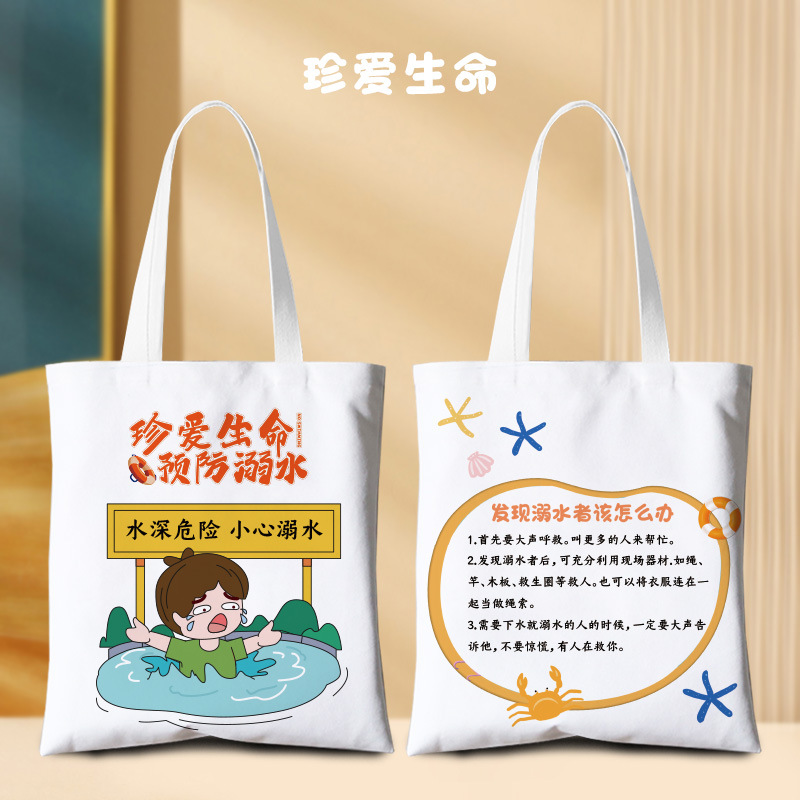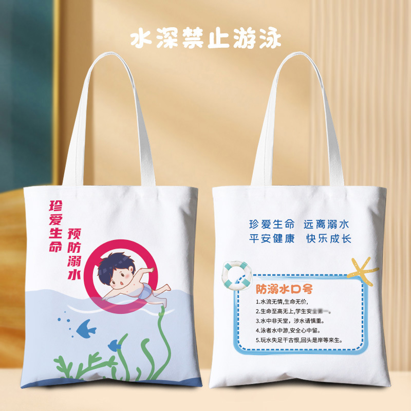 夏季防溺水环保袋安全教育宣传帆布袋印图学生彩印手提袋印logo