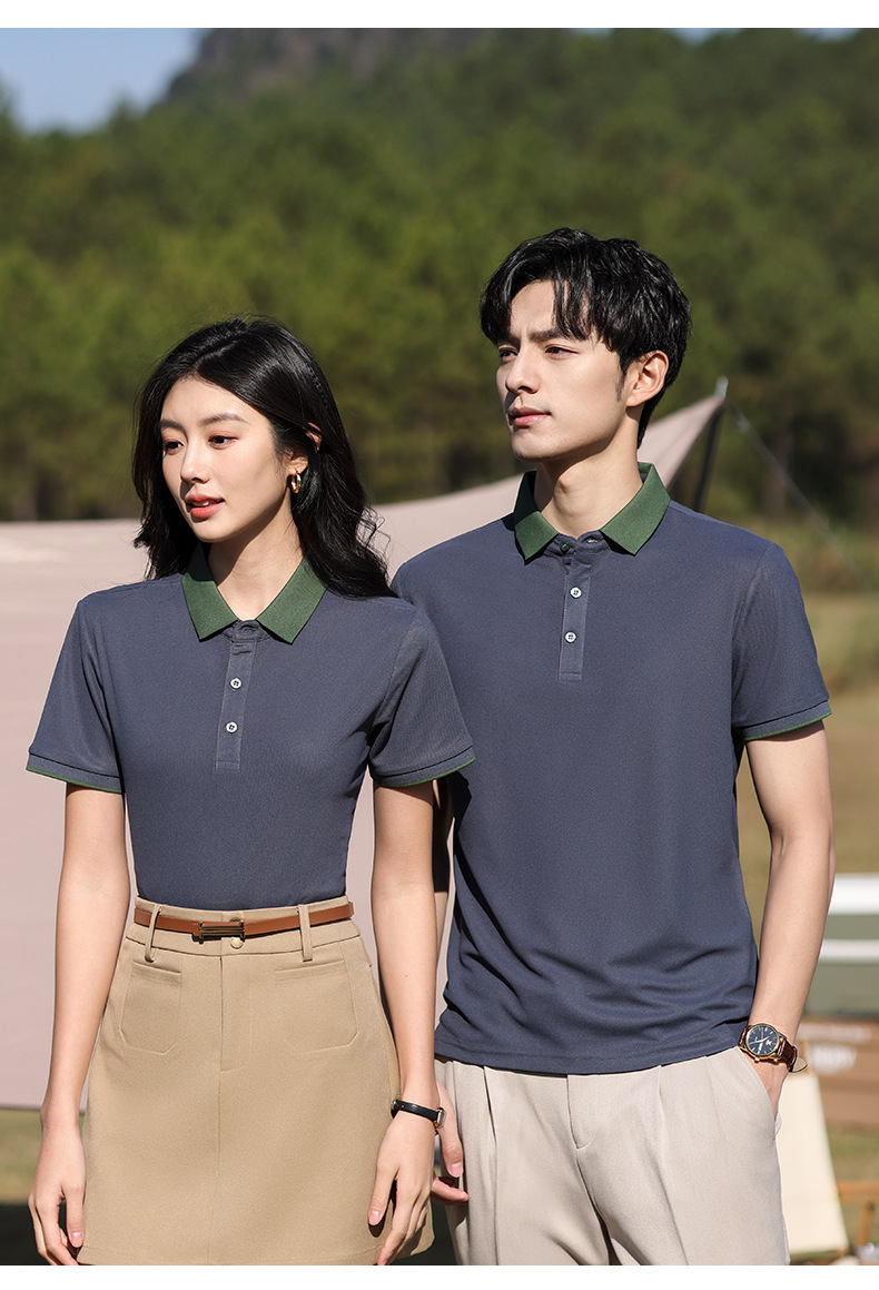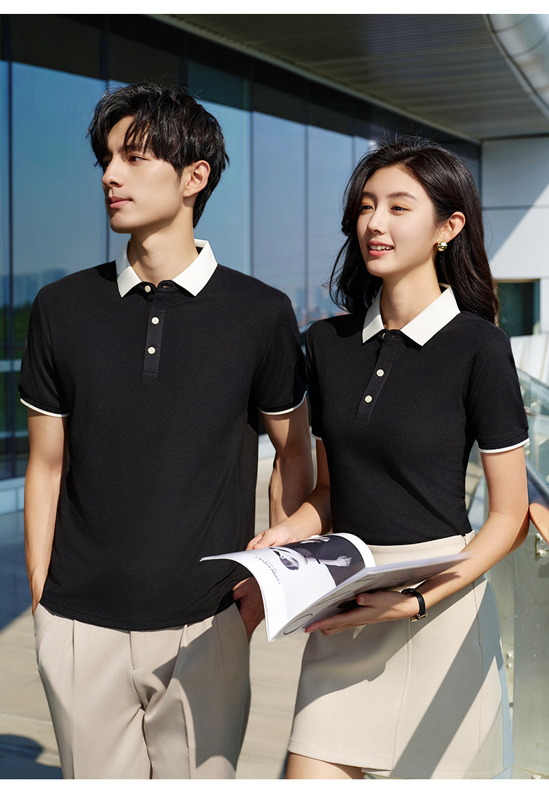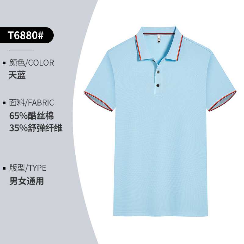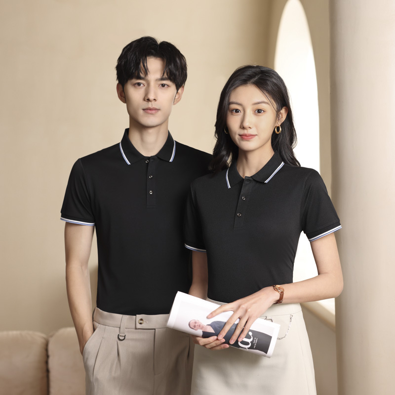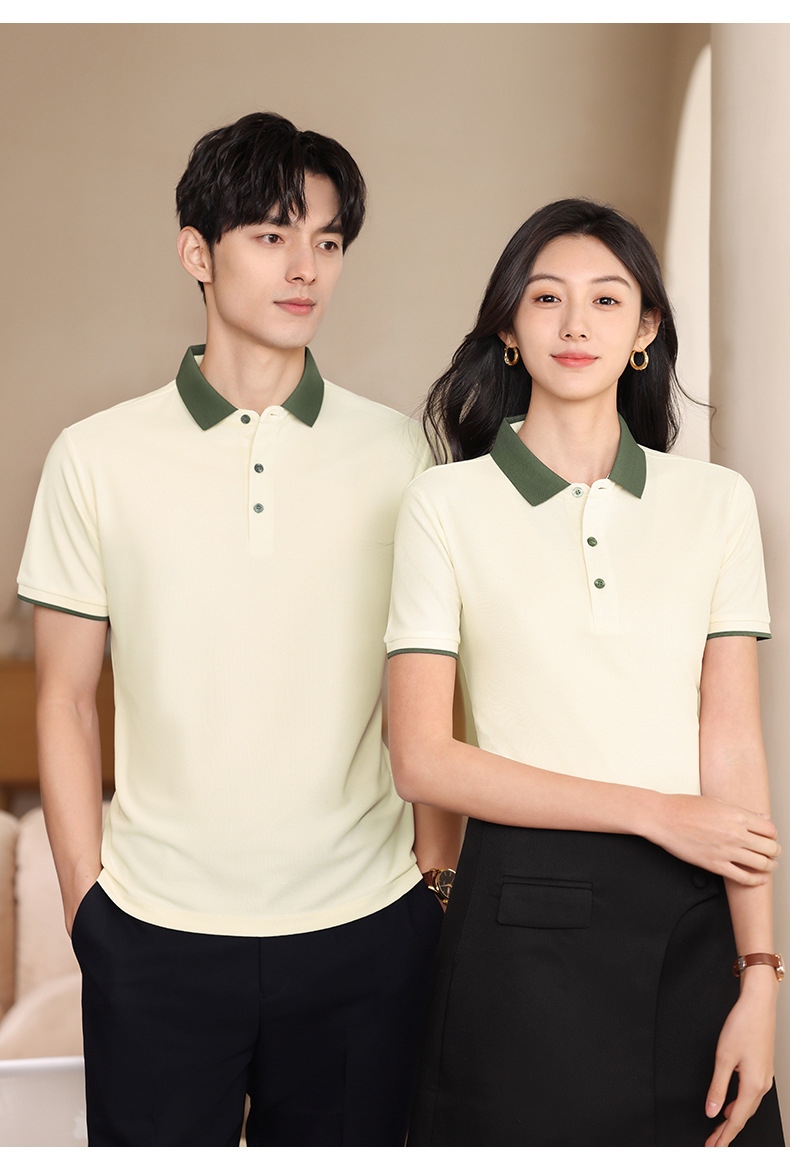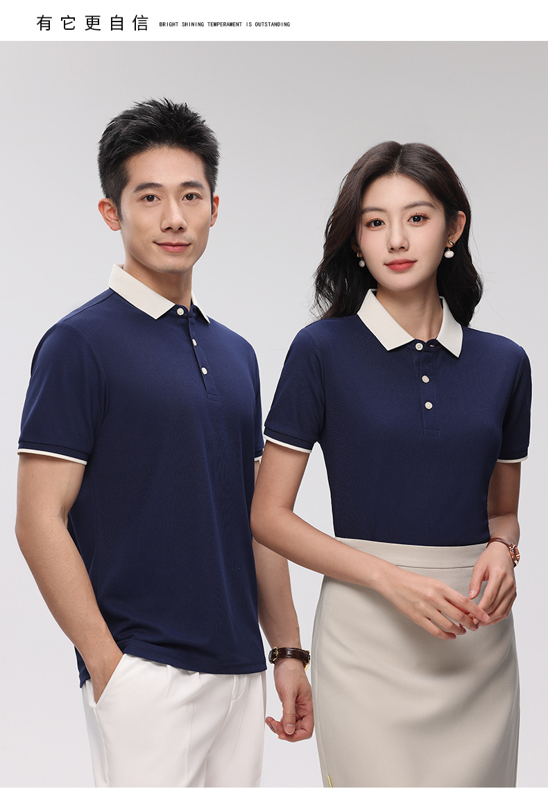T6880双边色织夏季衫男女工作服印logo文化衫翻领t恤短袖工衣