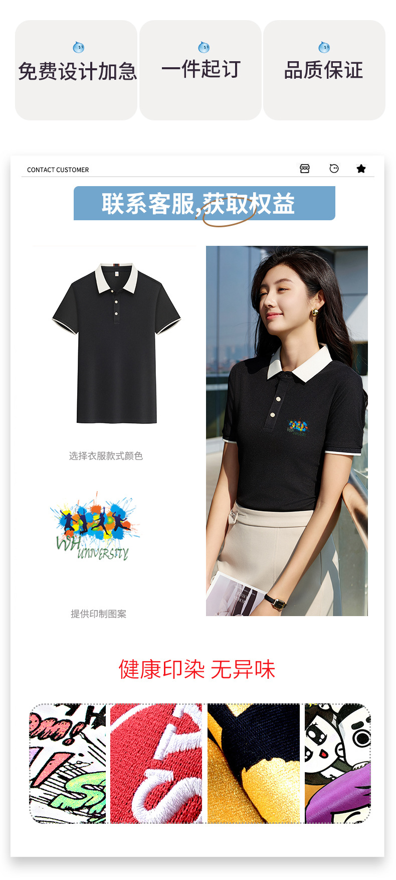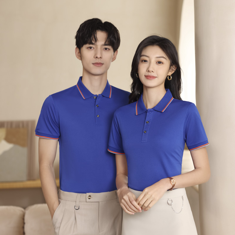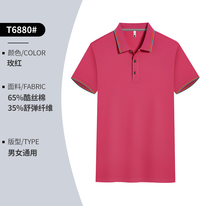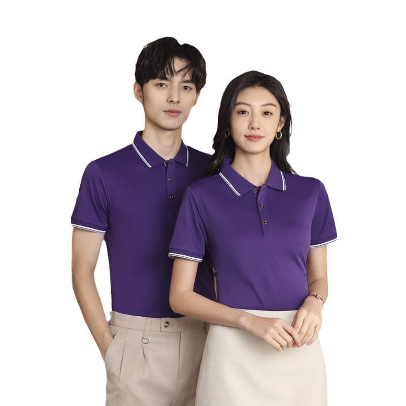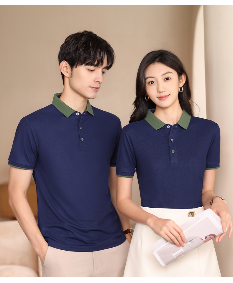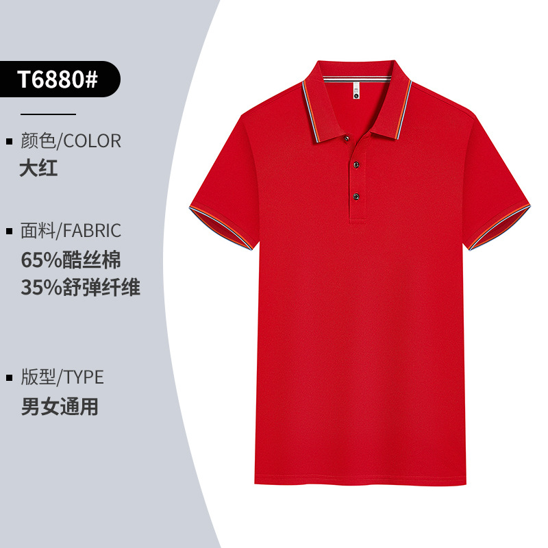 T6880双边色织夏季衫男女工作服印logo文化衫翻领t恤短袖工衣