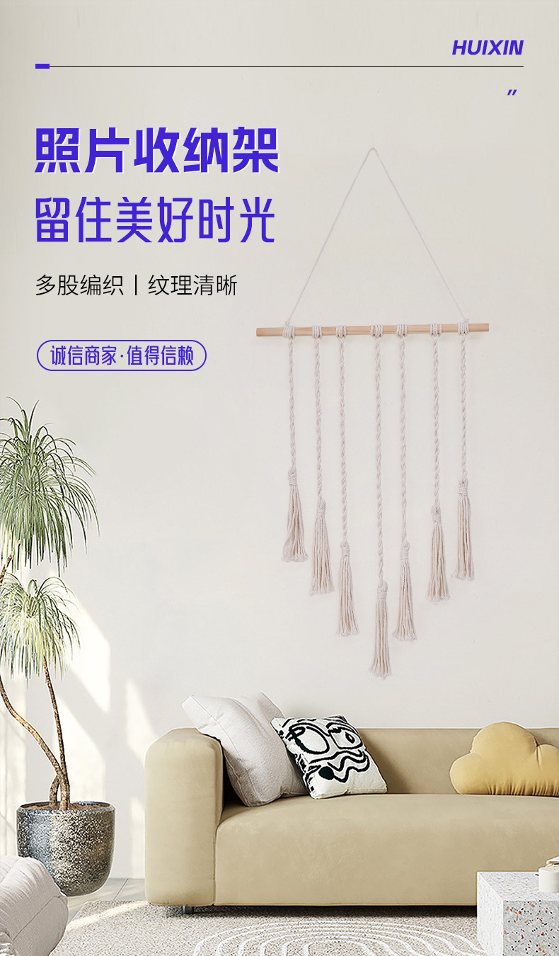 照片收纳架 手工编织挂墙北欧风编织装饰收纳壁毯悬挂照片挂架