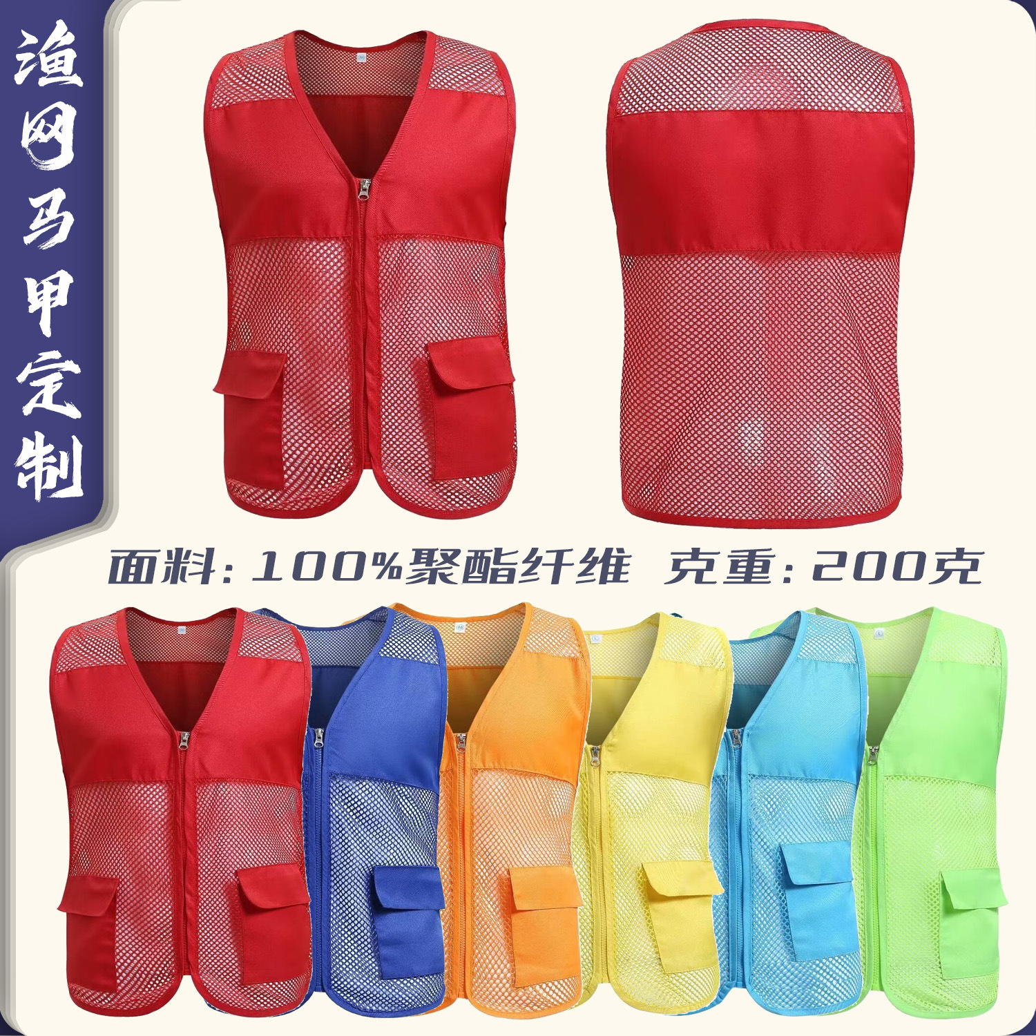 志愿者马甲定制印字logo路政反光背心义工渔网格多口袋广告工作服