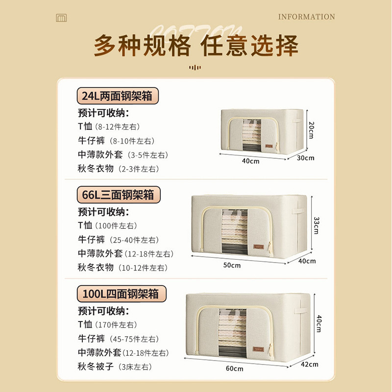 整理师收纳箱加厚防潮衣物钢架整理箱被子玩具折叠收纳储物百纳箱