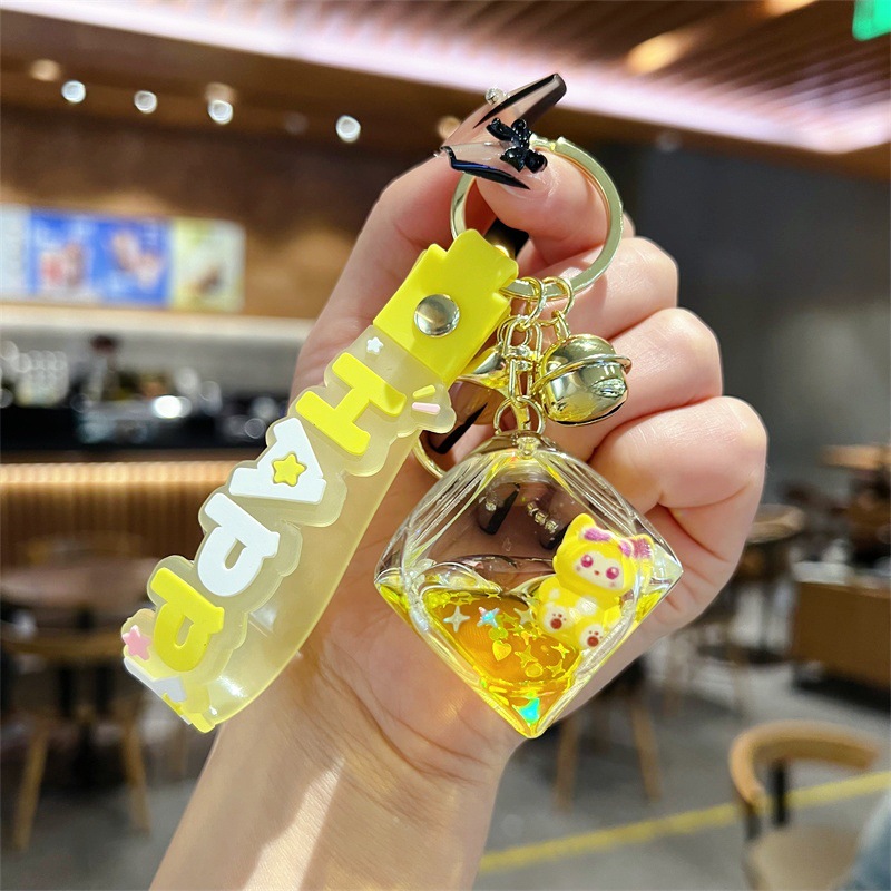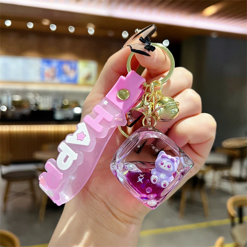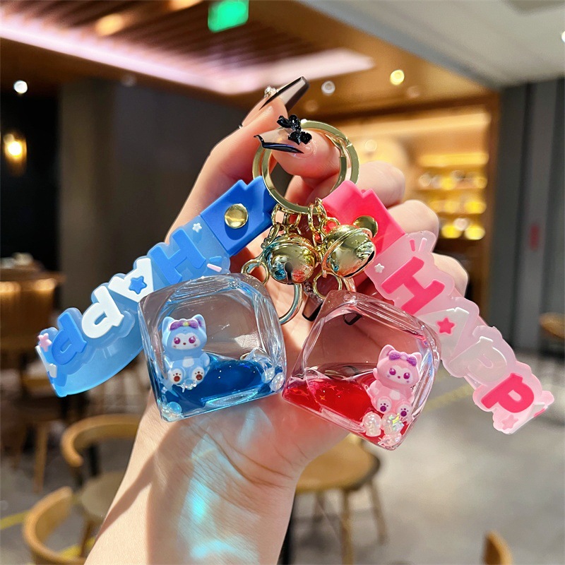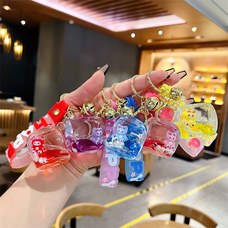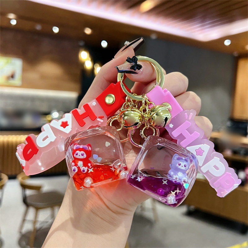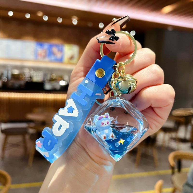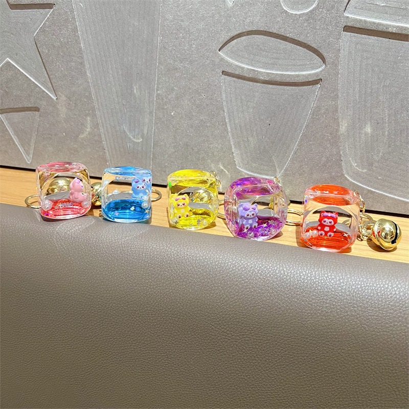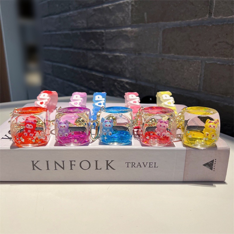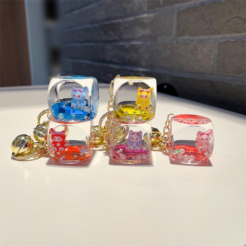 创意入油玲娜贝儿骰子流沙瓶钥匙扣可爱方块贝儿漂流瓶钥匙链批发