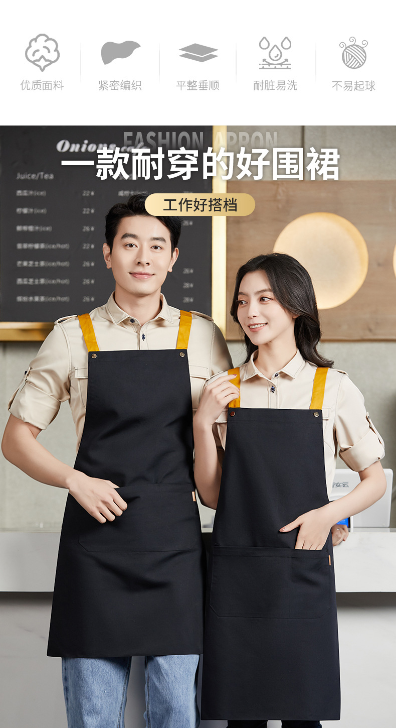 厂家批发广告围裙印logo餐饮奶茶店防水围裙刺绣厨房围裙
