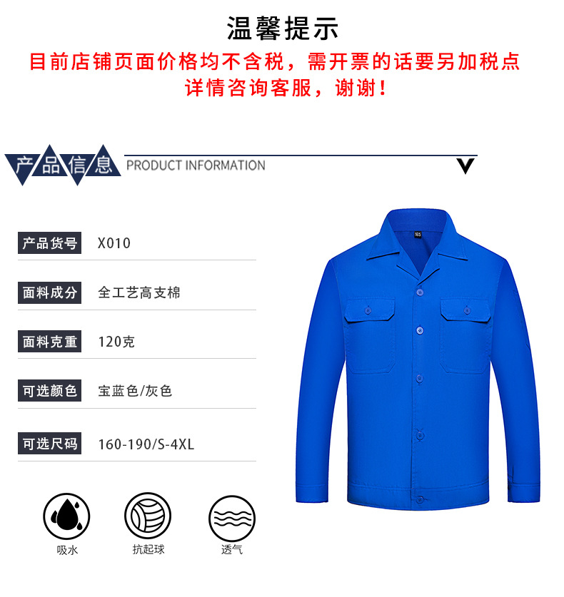厂家直营夏季纯色长袖工作服批发全工艺高支棉车间工装劳保服上衣