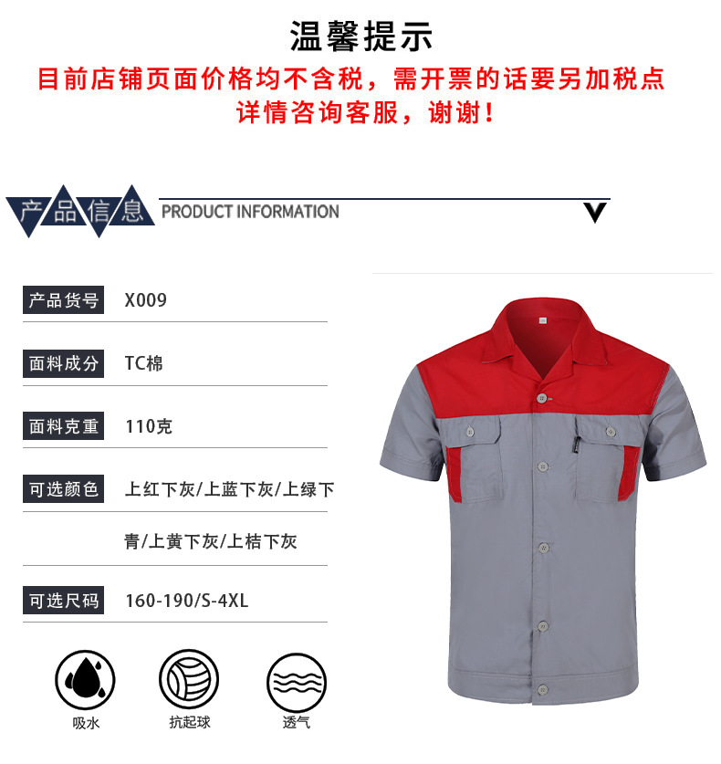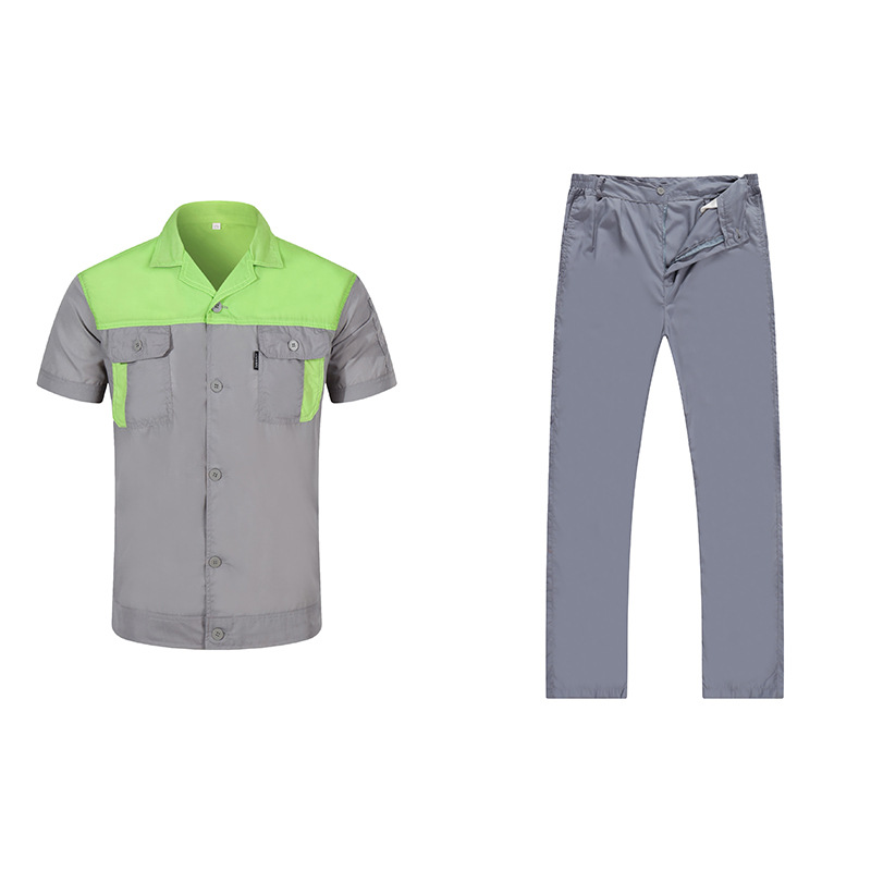 厂家直营夏季短袖款拼色工作服 劳保服现货批发工厂车间工装男装
