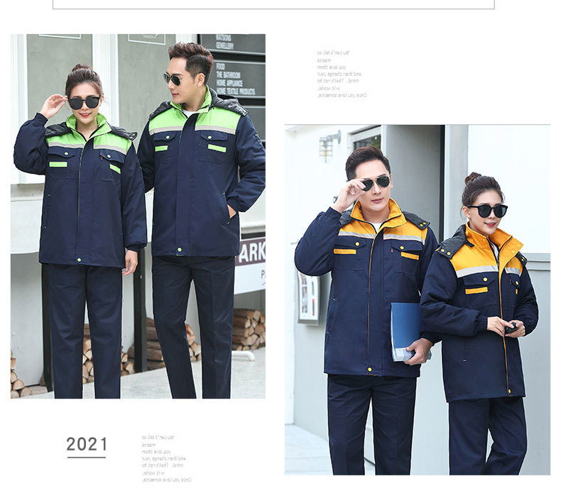 冬季加厚拼色工作棉服冷库物业防寒保暖反光棉衣批发工厂工装棉袄