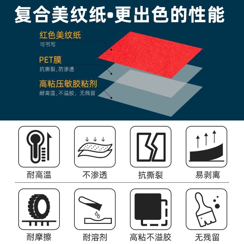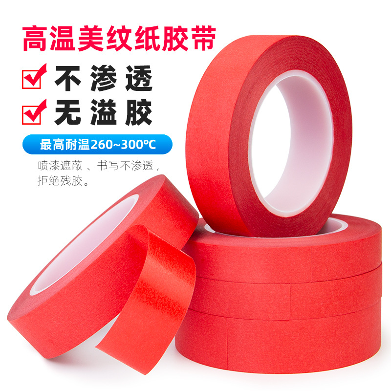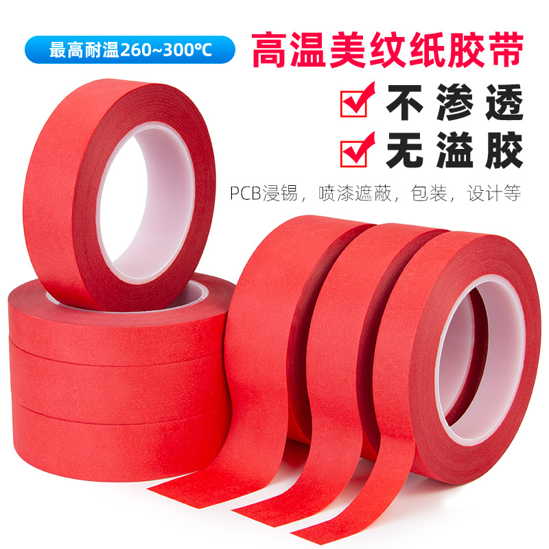 维迗复合红美纹耐高温强粘高温胶带 线路板烤漆PET红色美纹纸胶带