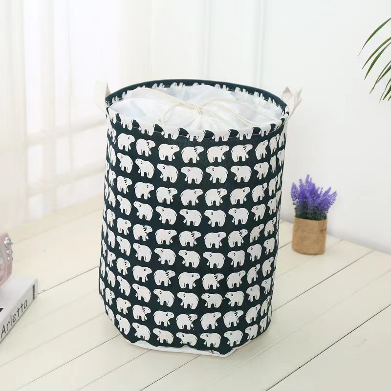 棉麻布艺束口脏衣篮防水防潮折叠玩具收纳桶卧室浴室脏衣服收纳筐