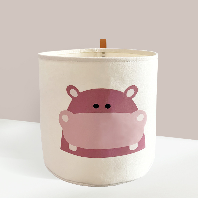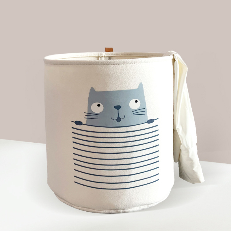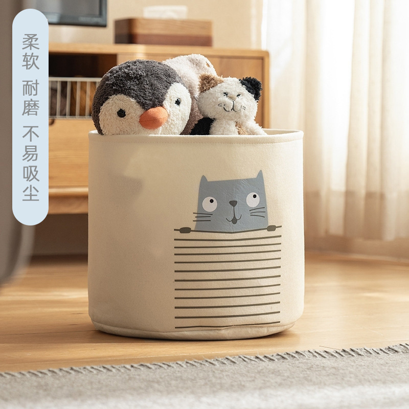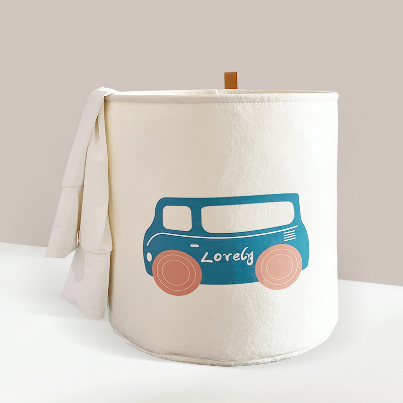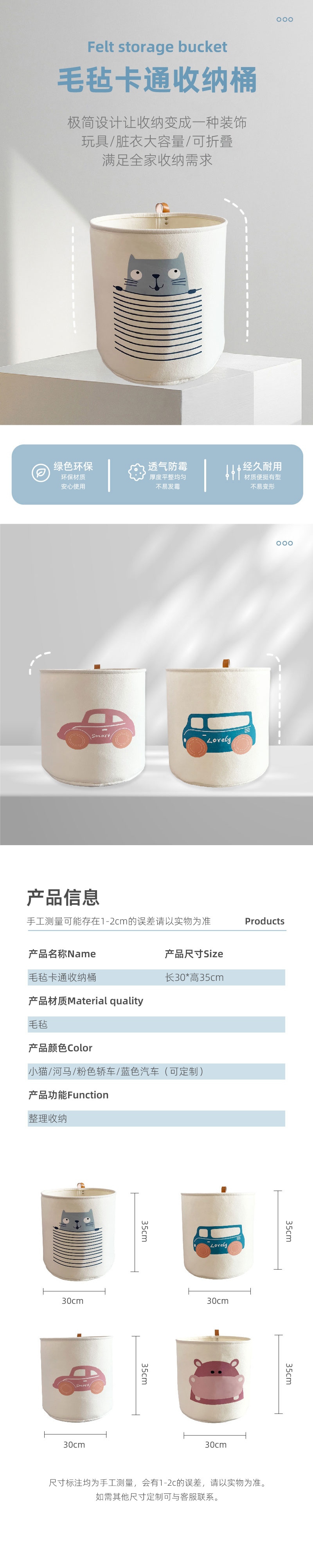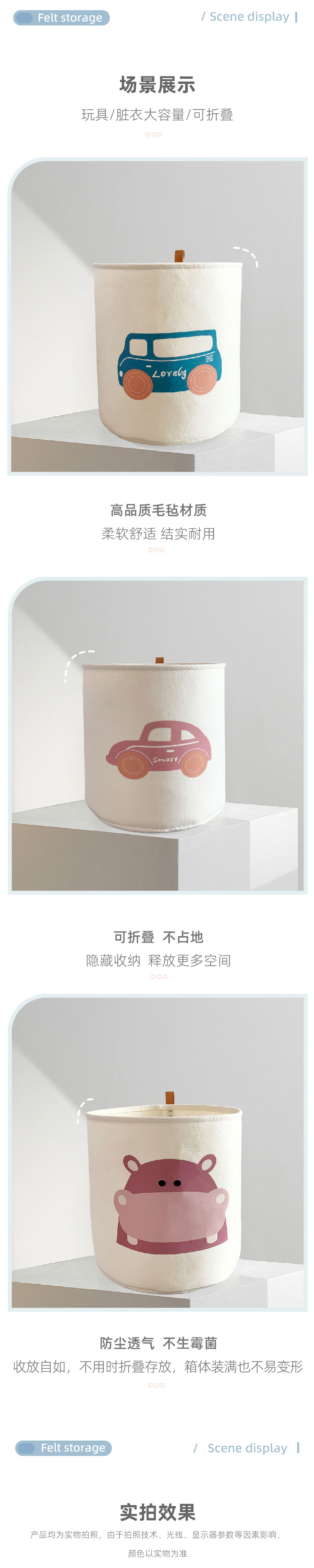 ins风印花毛毡收纳筐儿童玩具收纳篮圆形小清新家居收纳桶脏衣篮