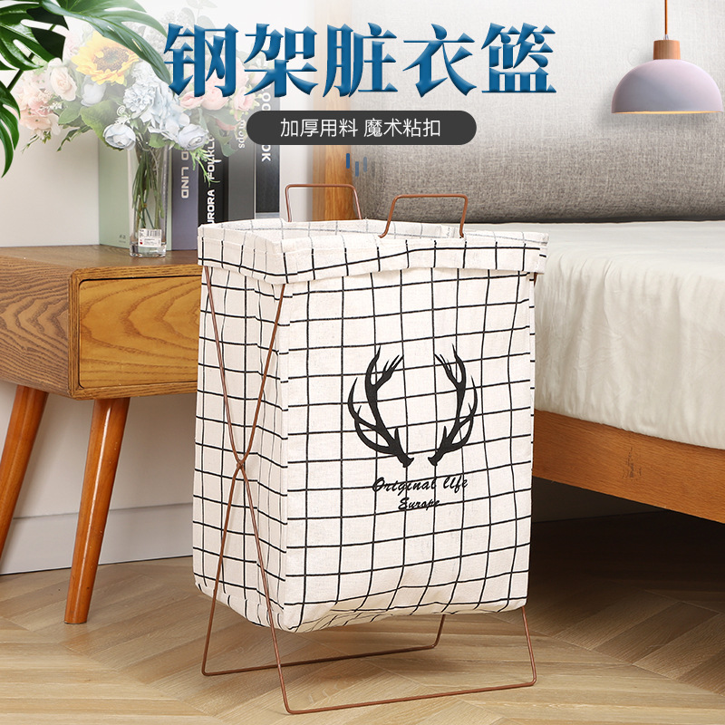 厂家供应钢架脏衣篮家居收纳箱钢架 脏衣篓骨 折叠式脏衣篓铁架框