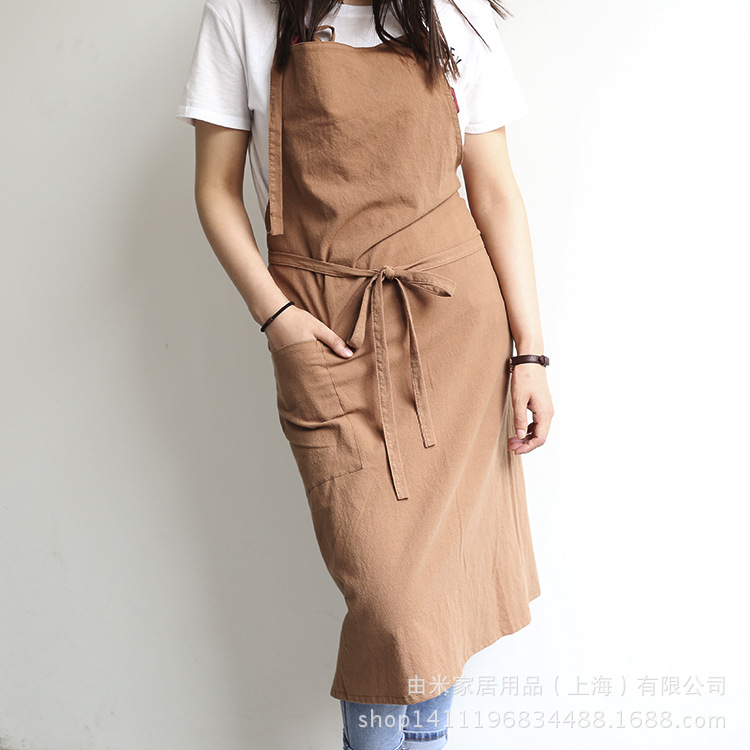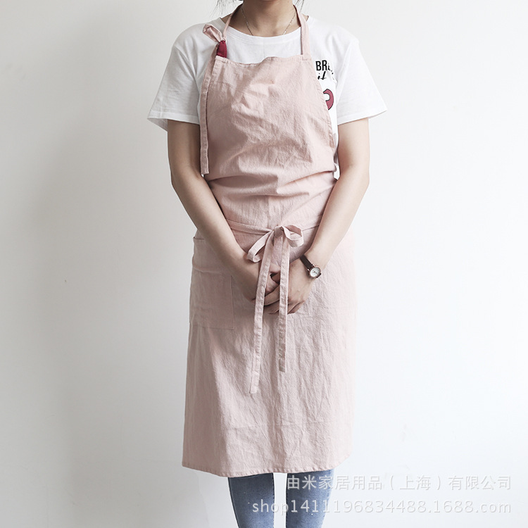 2024创意新款纯色厨房围裙日系韩式无袖小清新精纺棉成人围裙