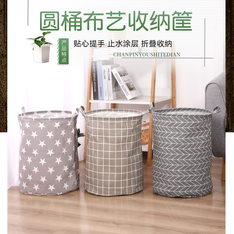 厂家批发布艺收纳袋棉麻布艺圆桶收纳篮脏衣收纳筐家用收纳储物筐